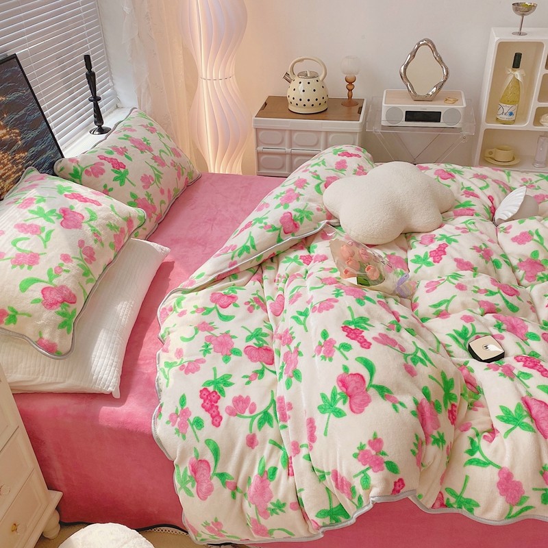 商品名称:顾里家纺2021新款ins韩国高端保暖牛奶绒四件套春系玫花