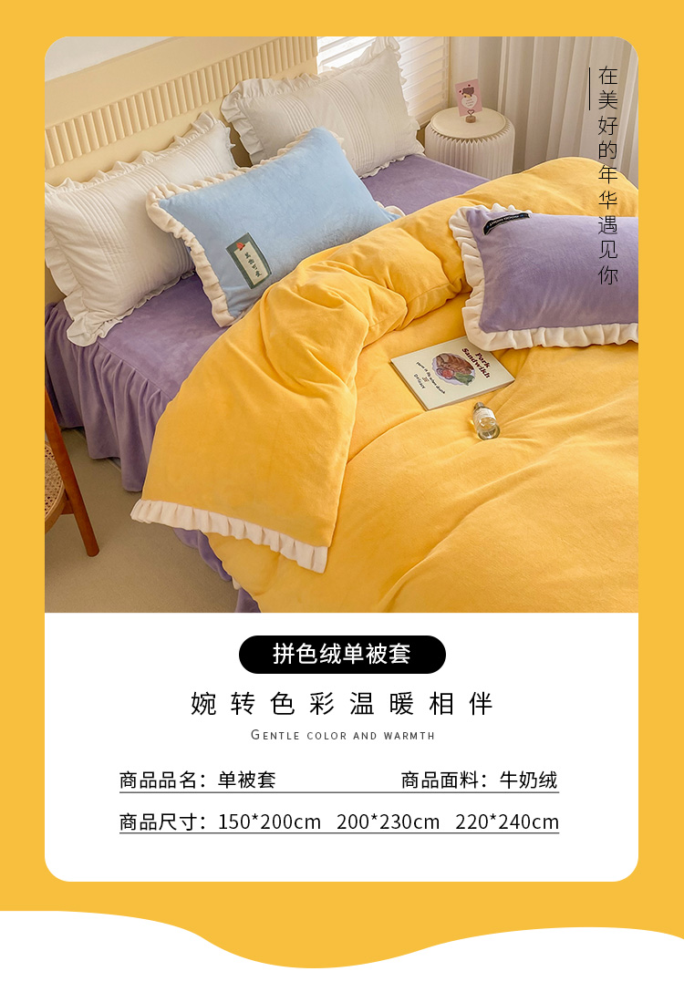 商品名称:安哆啦 2021新款牛奶绒230g糖果色单被套 糖果色-浅烙黄