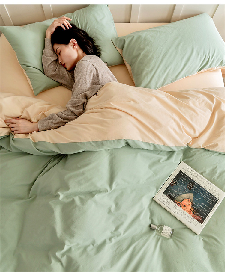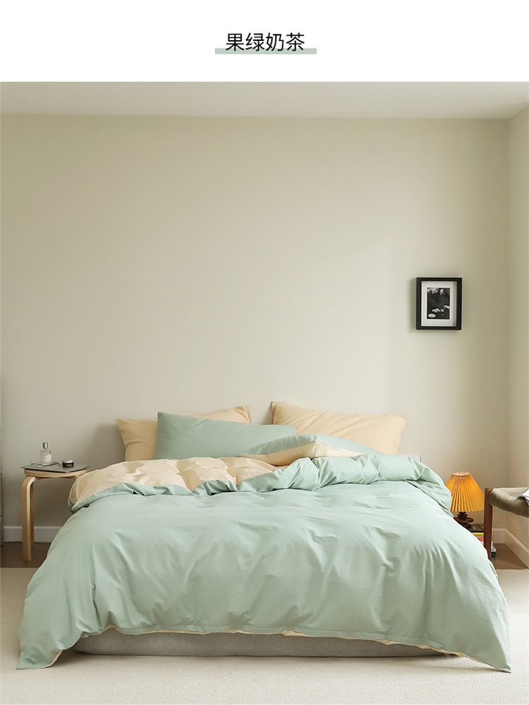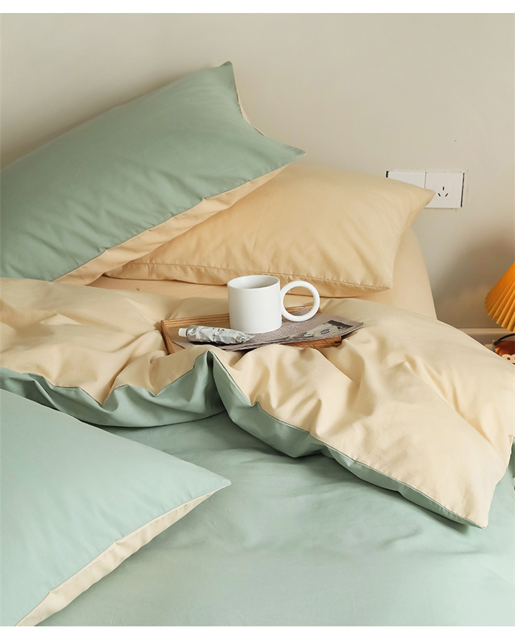 当前位置: 91家纺网 > 商品网购 > 床品套件 > 四件套 > 全棉普通四件套 > 寐眠 2021新款A类40支全棉撞色四件套 豆绿+奶茶