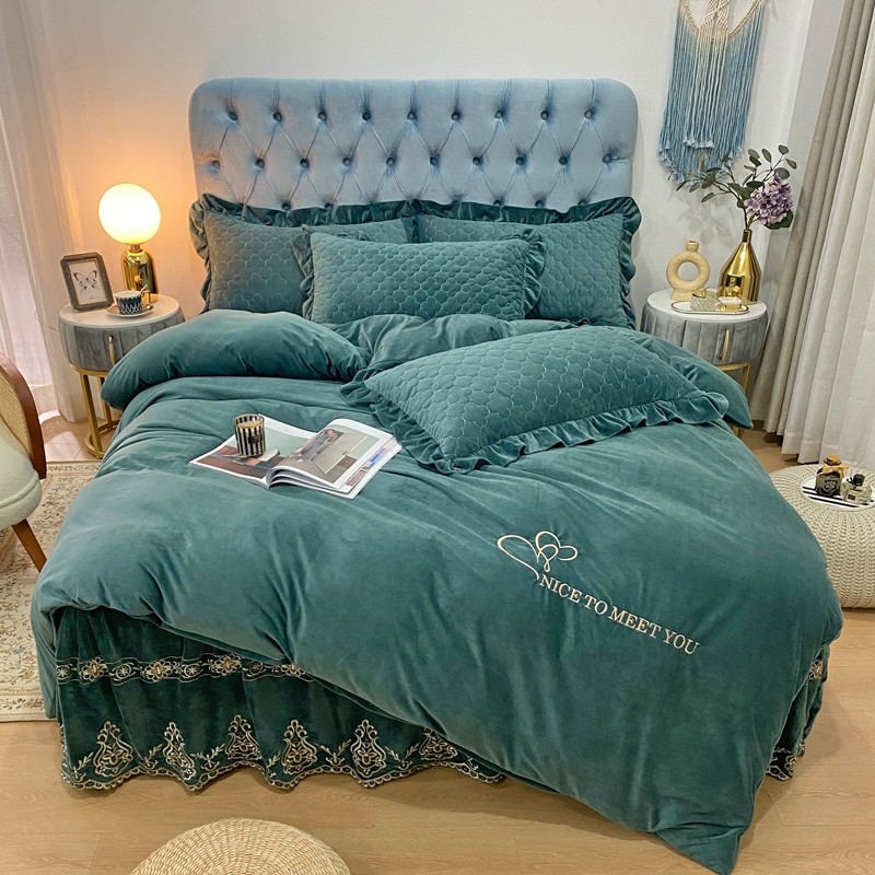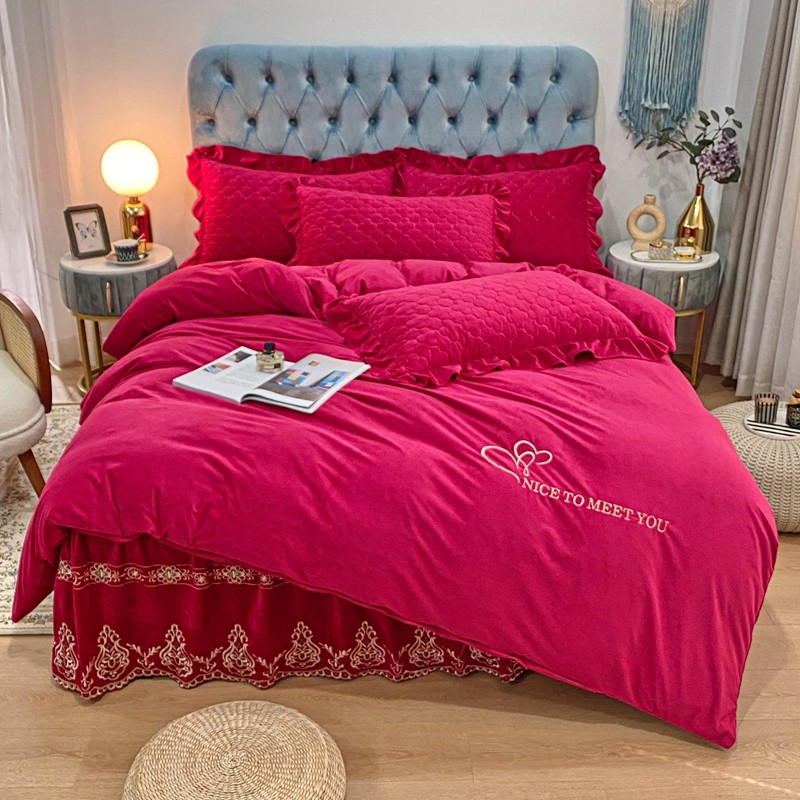 (总)星尚 2021新款秋冬高定婴儿绒夹棉绣花床裙四件套