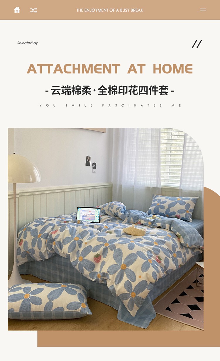 雅居纺家纺 2022新款13070全棉印花四件套 小情调