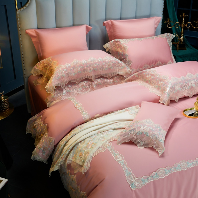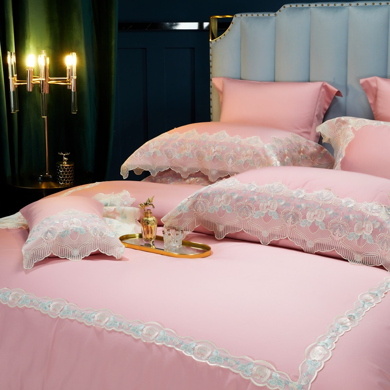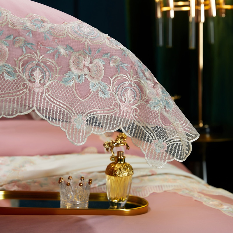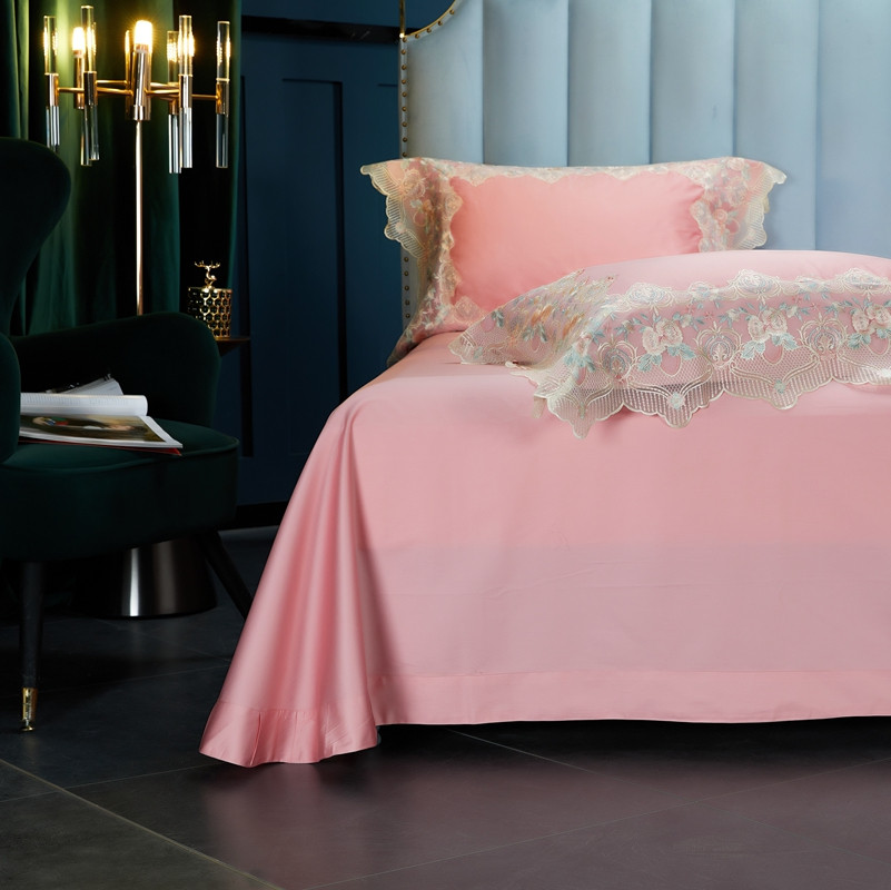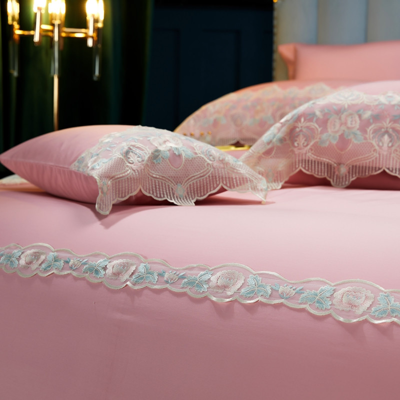 缔缦家纺 2022新款100支长绒棉蕾丝系列四件套-蕊初 粉色
