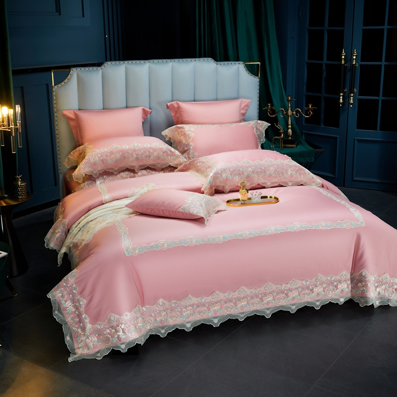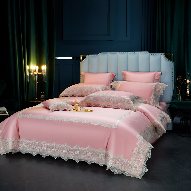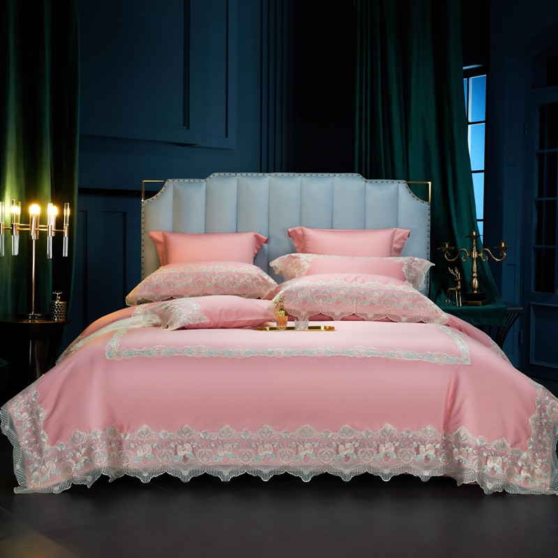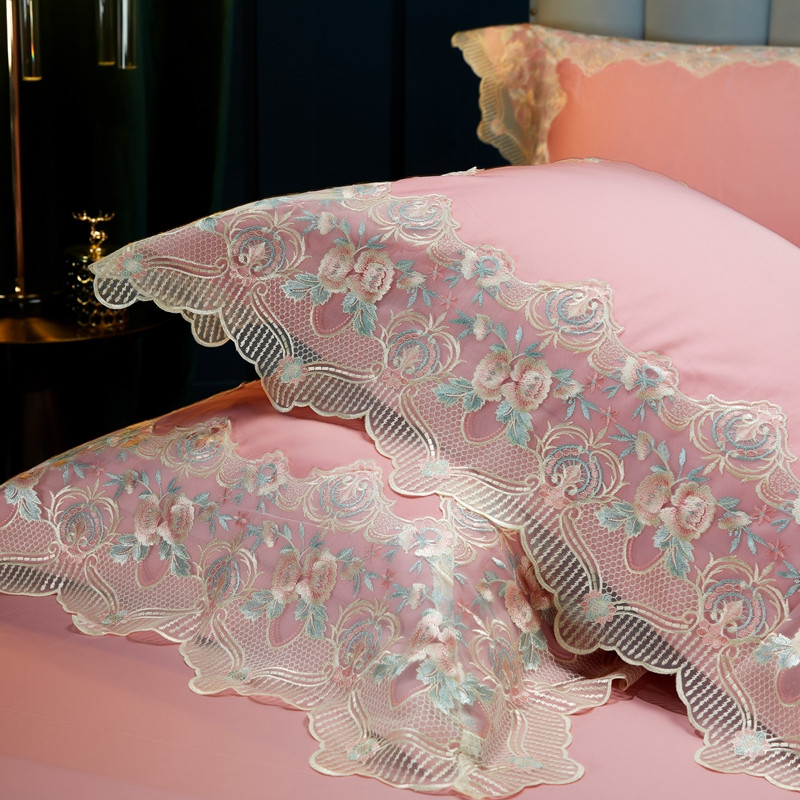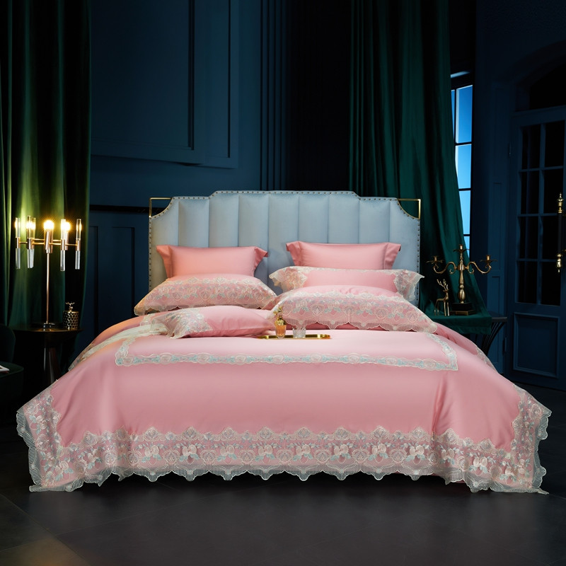 缔缦家纺 2022新款100支长绒棉蕾丝系列四件套-蕊初 粉色