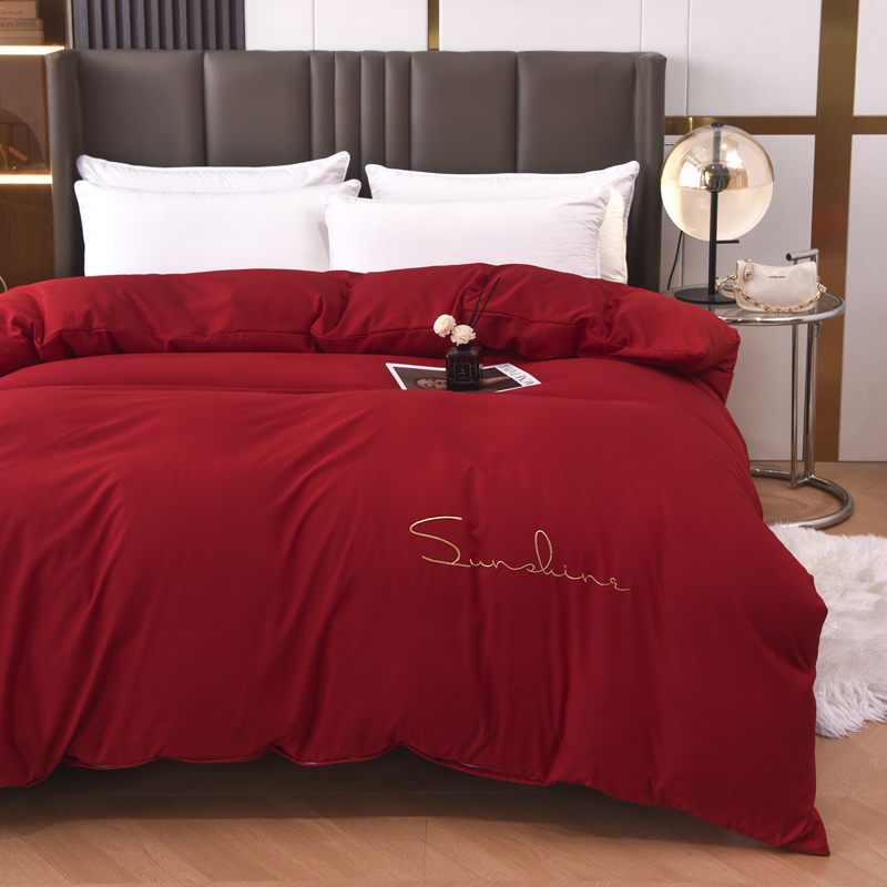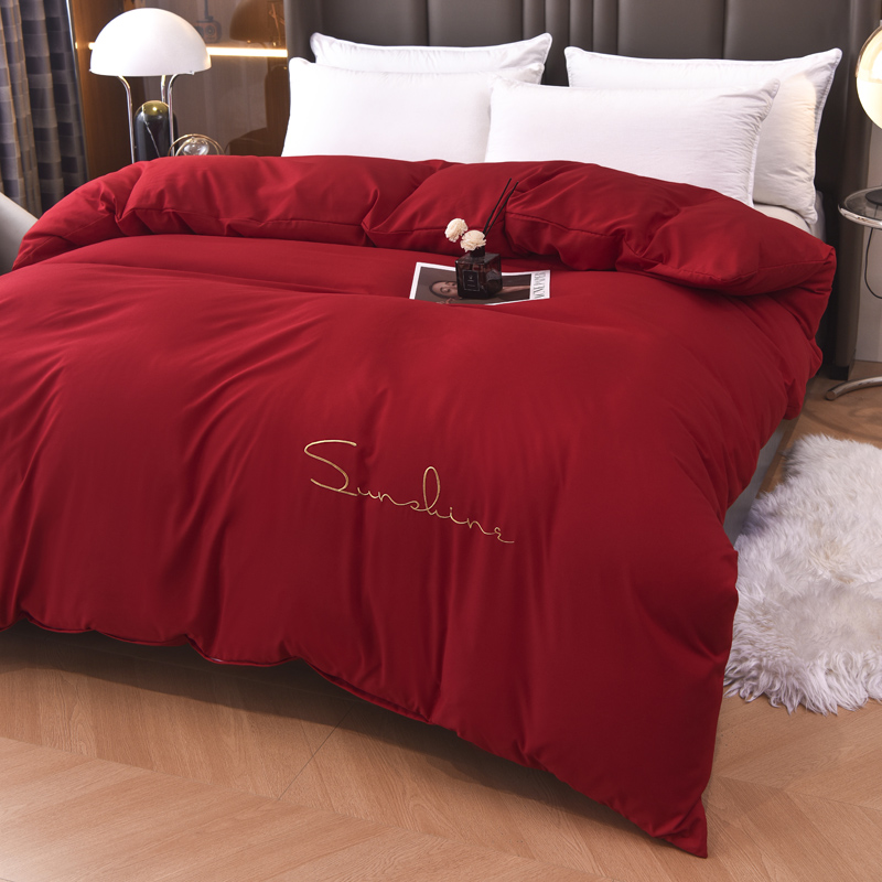 七仙女家纺 2025新款亲肤磨毛绣花款单被套直播供货 中国红