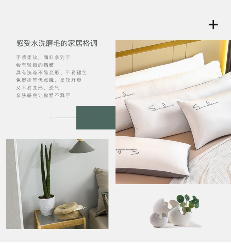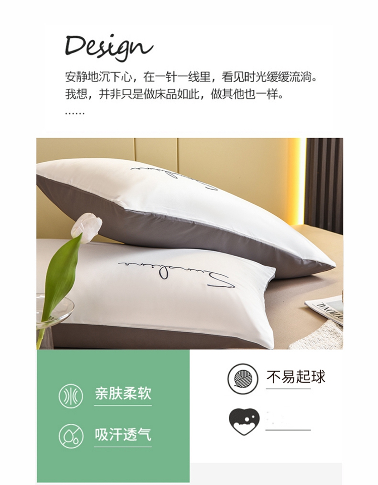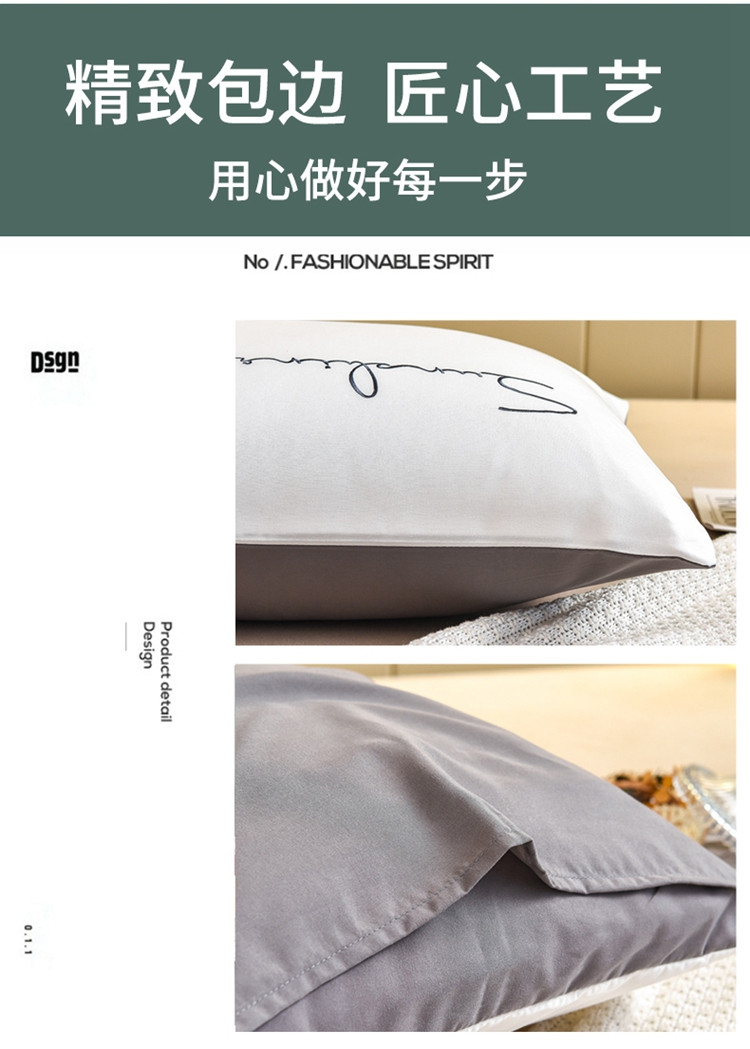七仙女 新款亲肤磨毛绣花款枕套直播供货 本白+浅灰/只