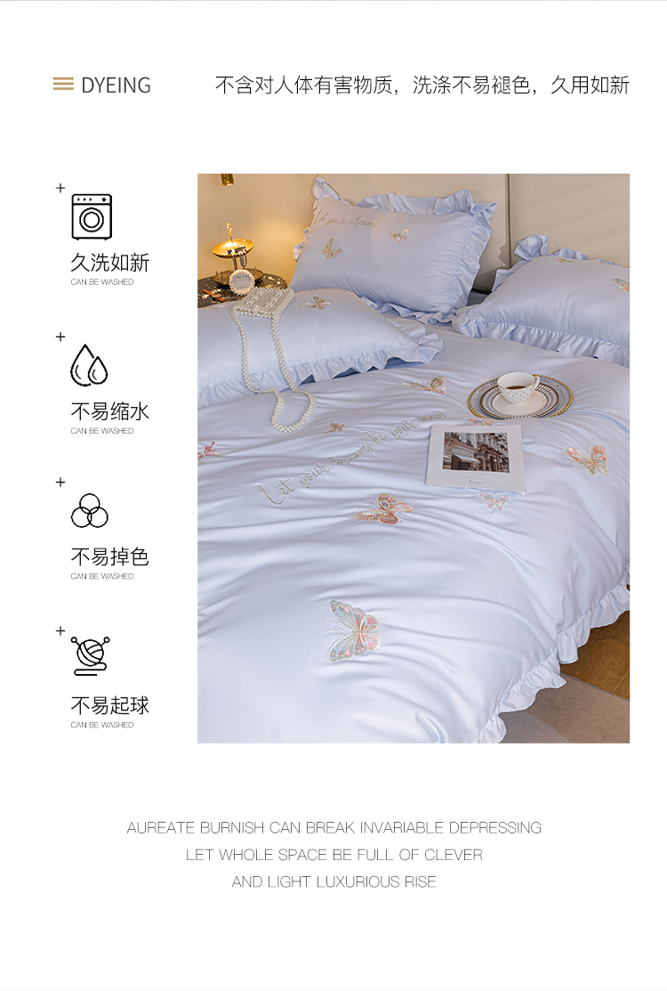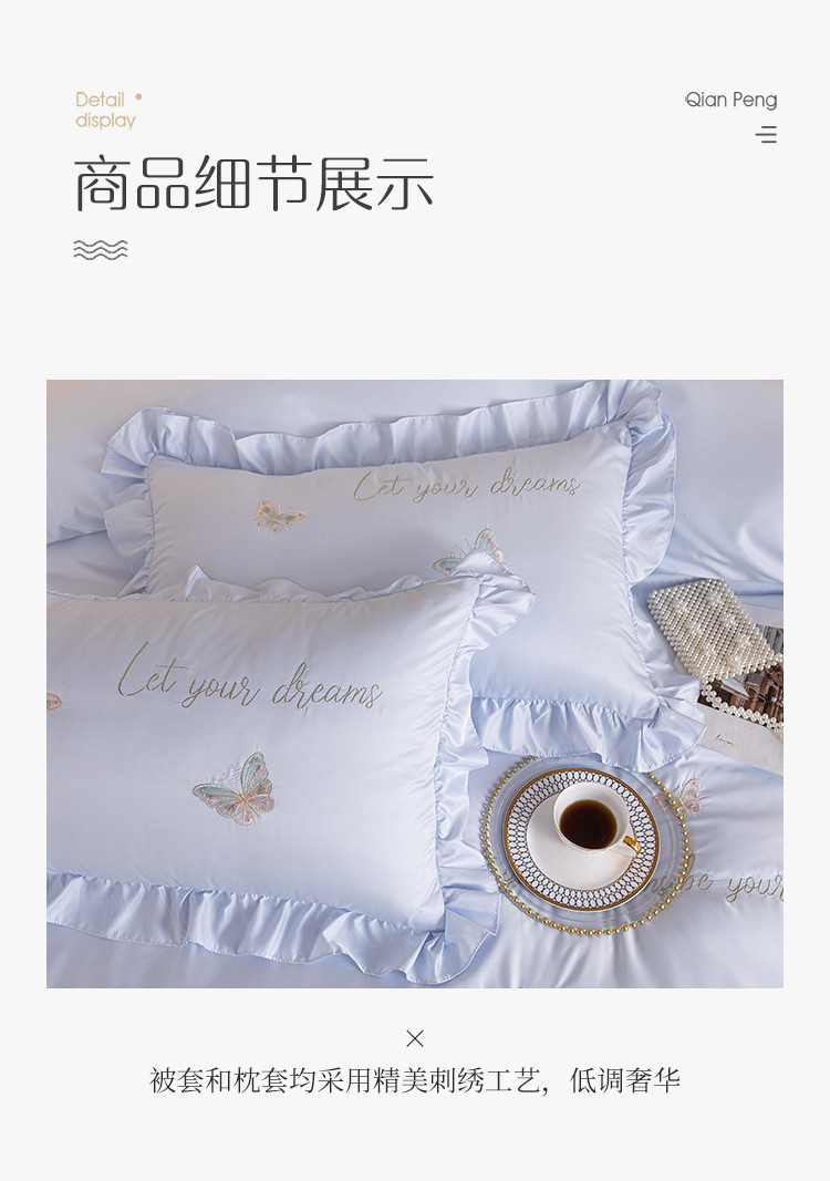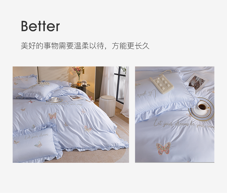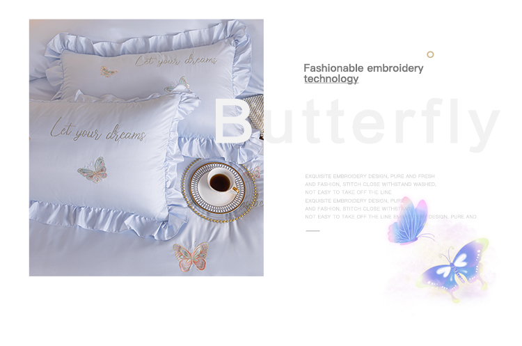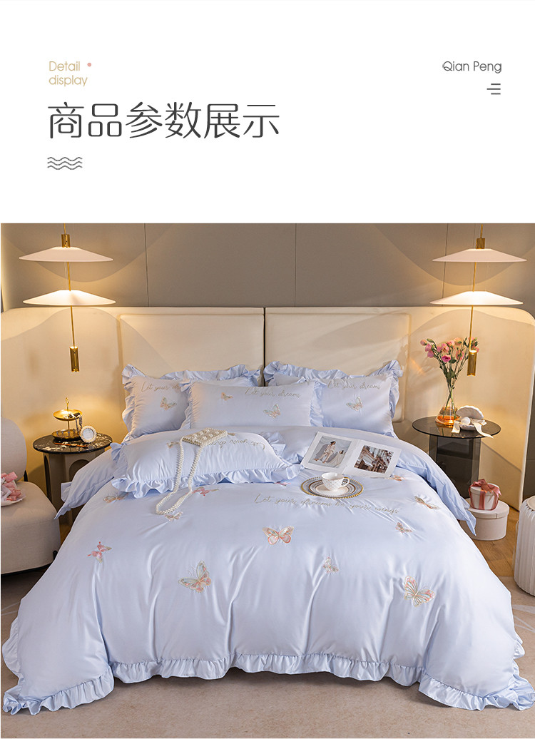 商品名称:理想家家纺 2022新款冰丝刺绣花边蝴蝶四件套 蓝