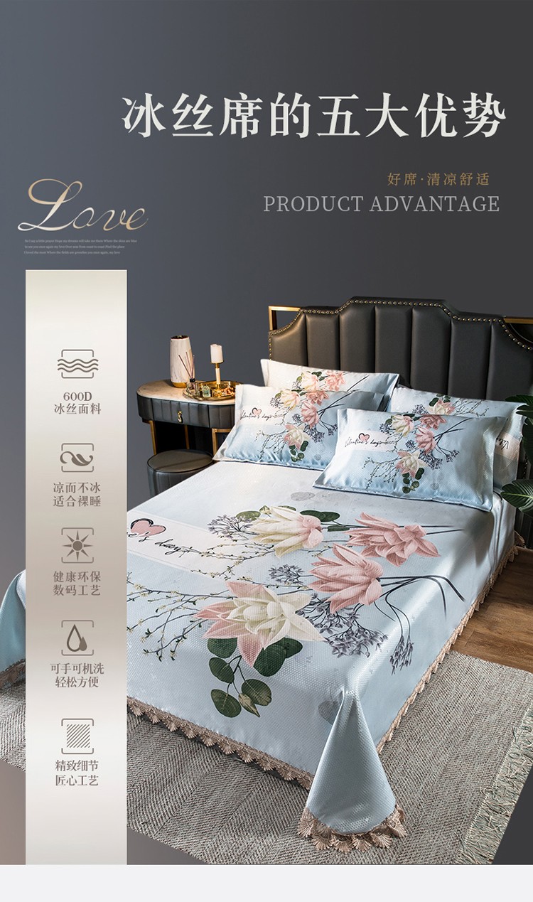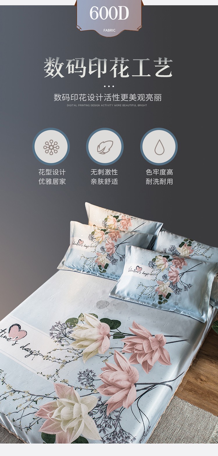 商品名称:其奥 2025数码大版冰丝席三件套凉席空调席软席 香草百合