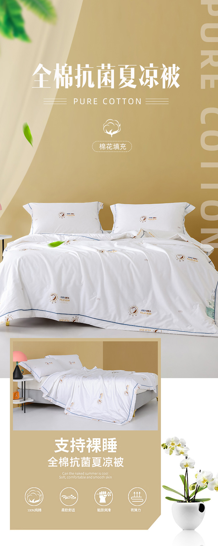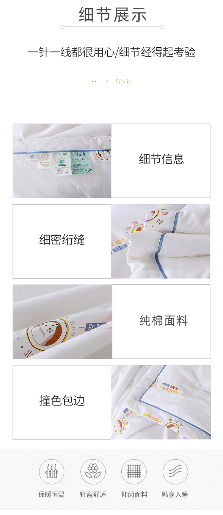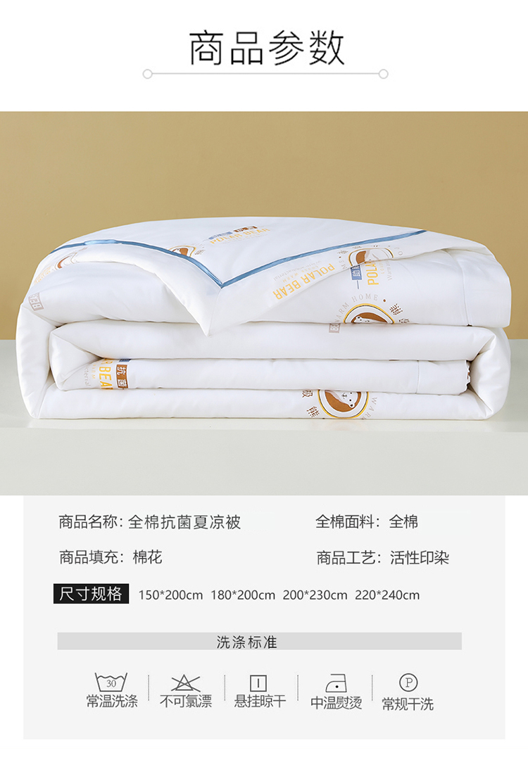 商品名称:梦镜 2025新款A类60支全棉抗菌夏凉被 北极熊白色