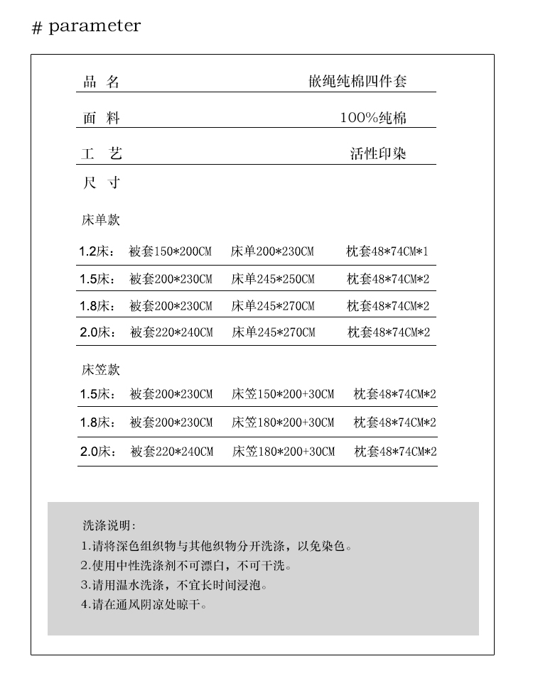 1.5m床笠款四件套 | ¥135.00 |