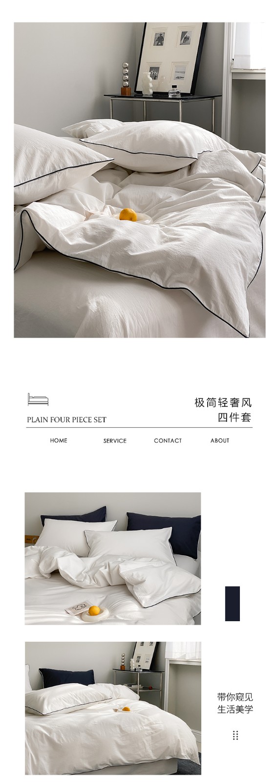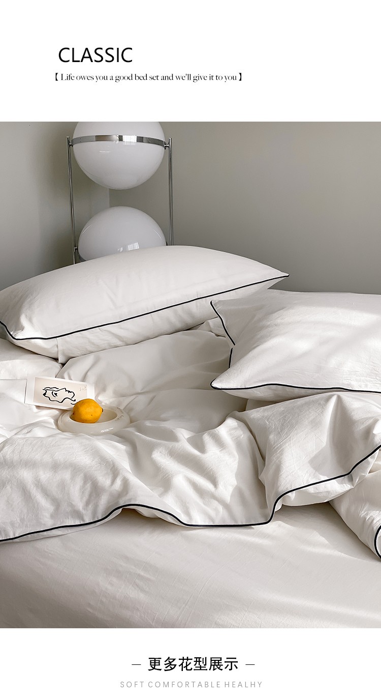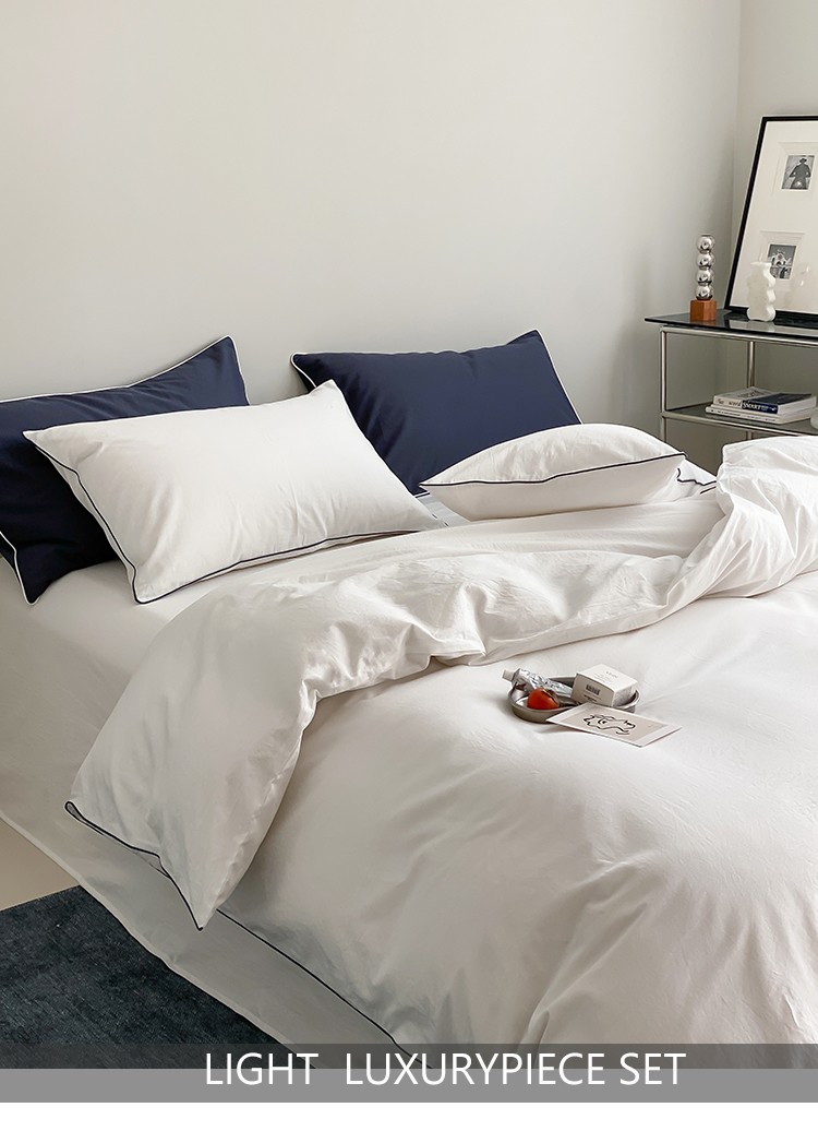 当前位置: 91家纺网 > 商品网购 > 床品套件 > 四件套 > 水洗棉四件套 > 纯棉水洗棉四件套全棉纯色滚边轻奢纯白套件藏青酒店风民宿