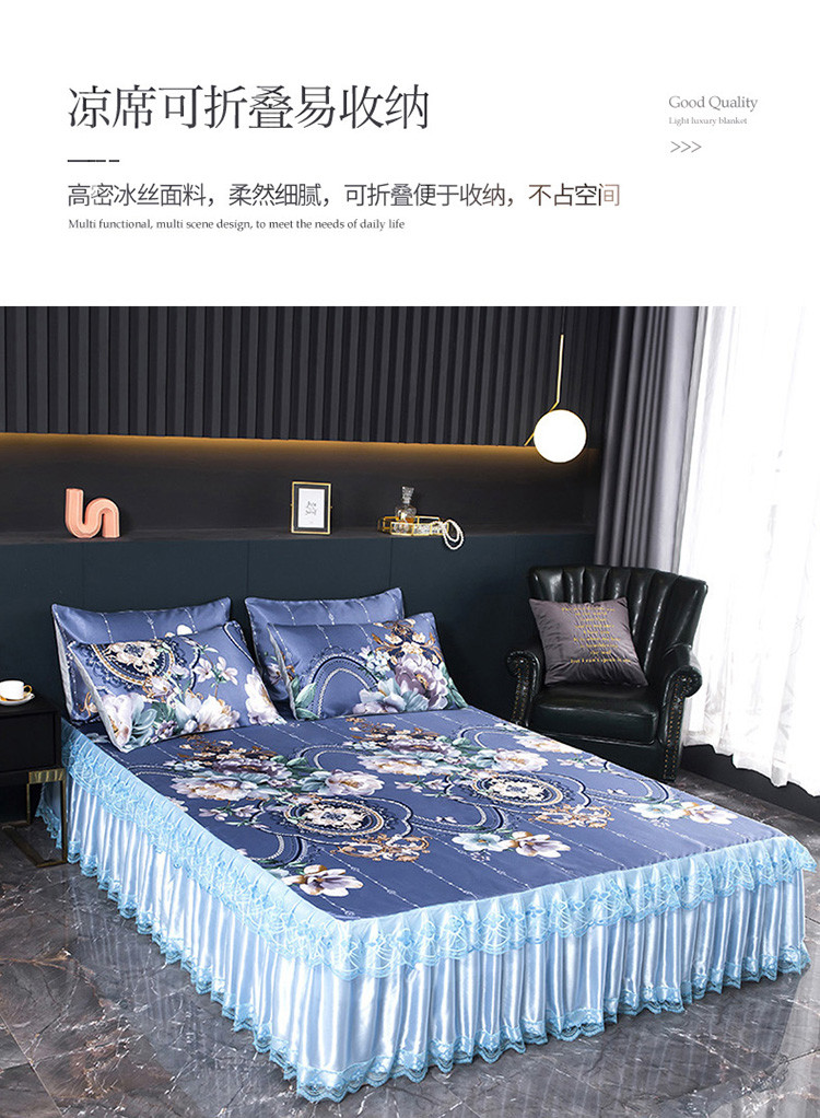 优姿家纺 2024新款冰丝凉席床裙款 花开富贵