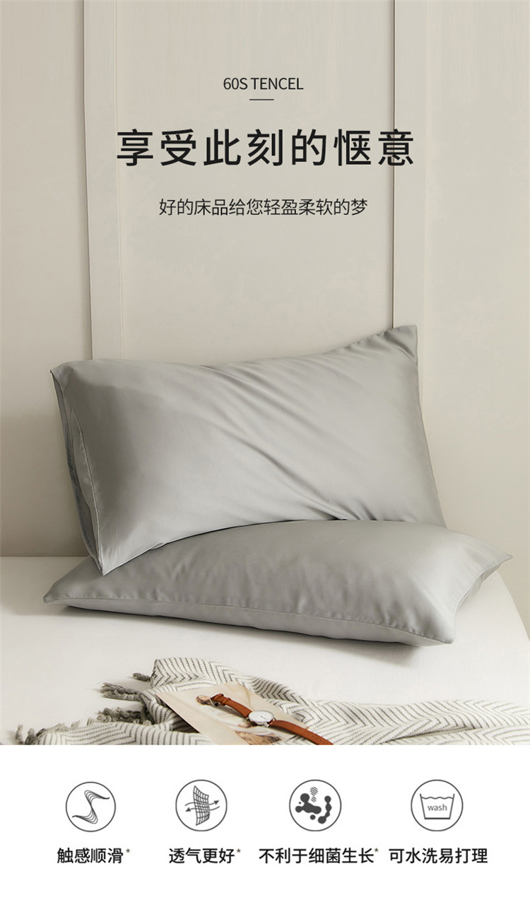 商品名称:新款60支天丝单品系列-枕套无色灰