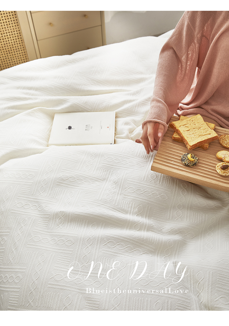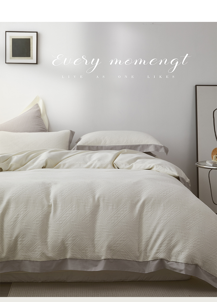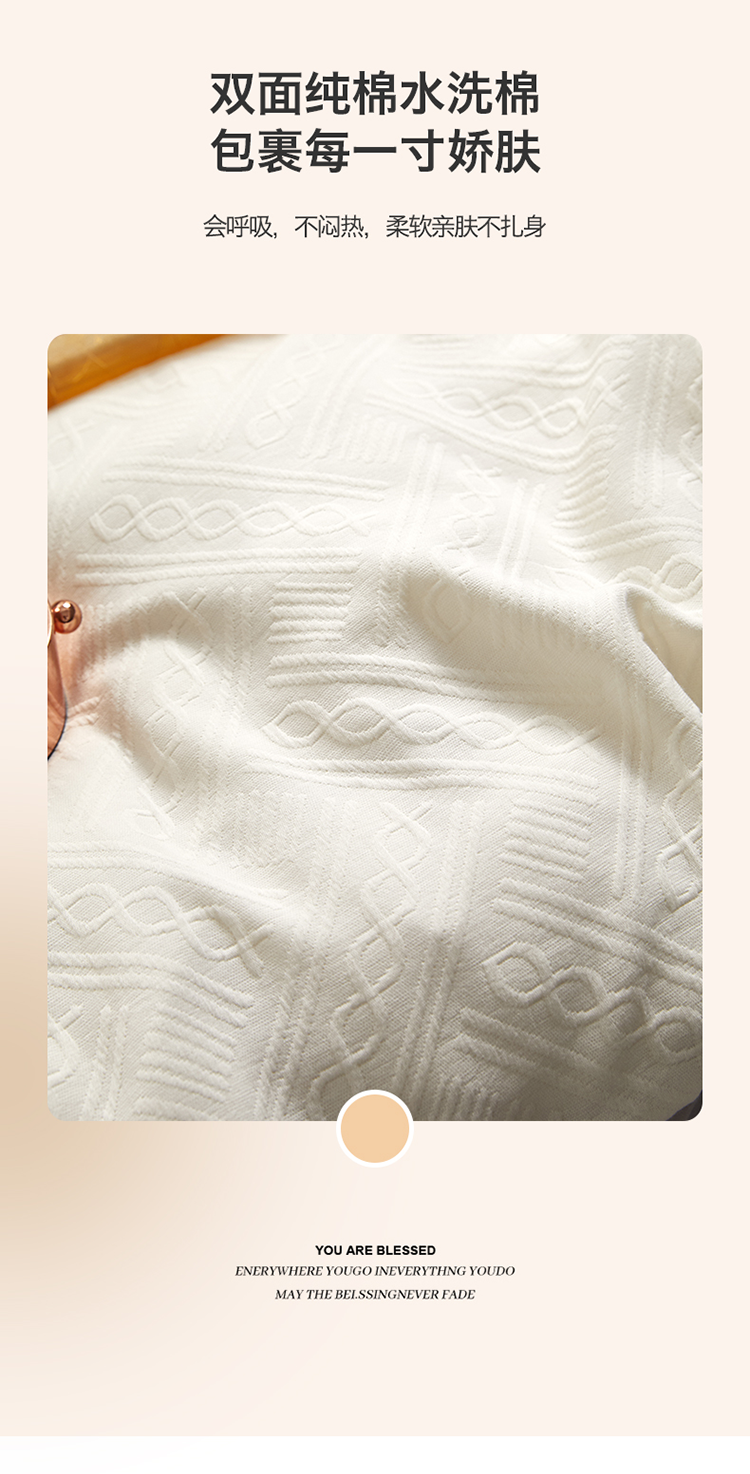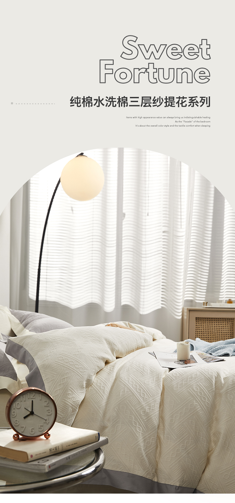 名品优仓 2023新款纯棉水洗棉三层纱提花四件套 环环相扣白