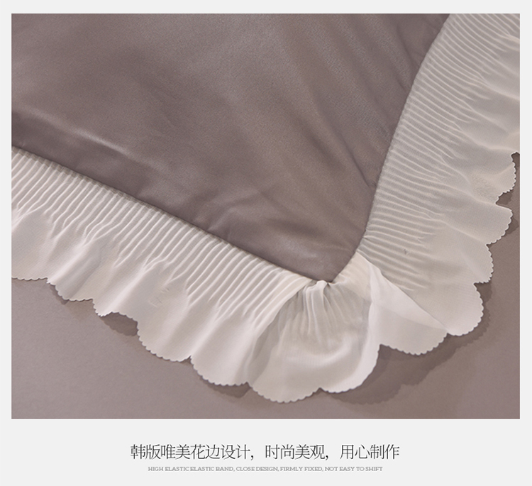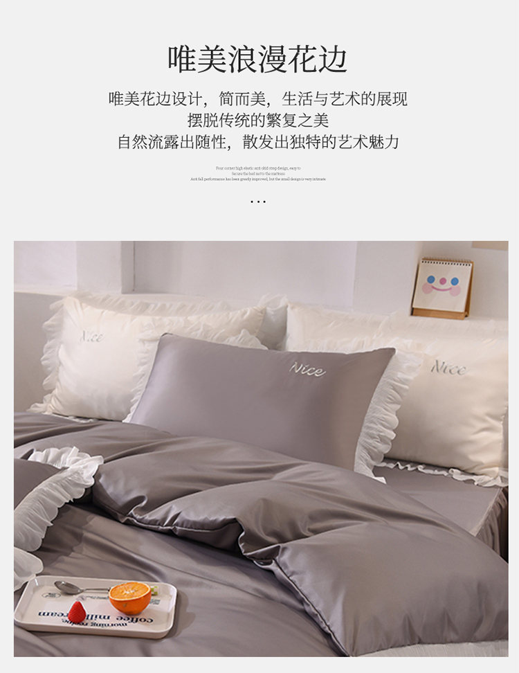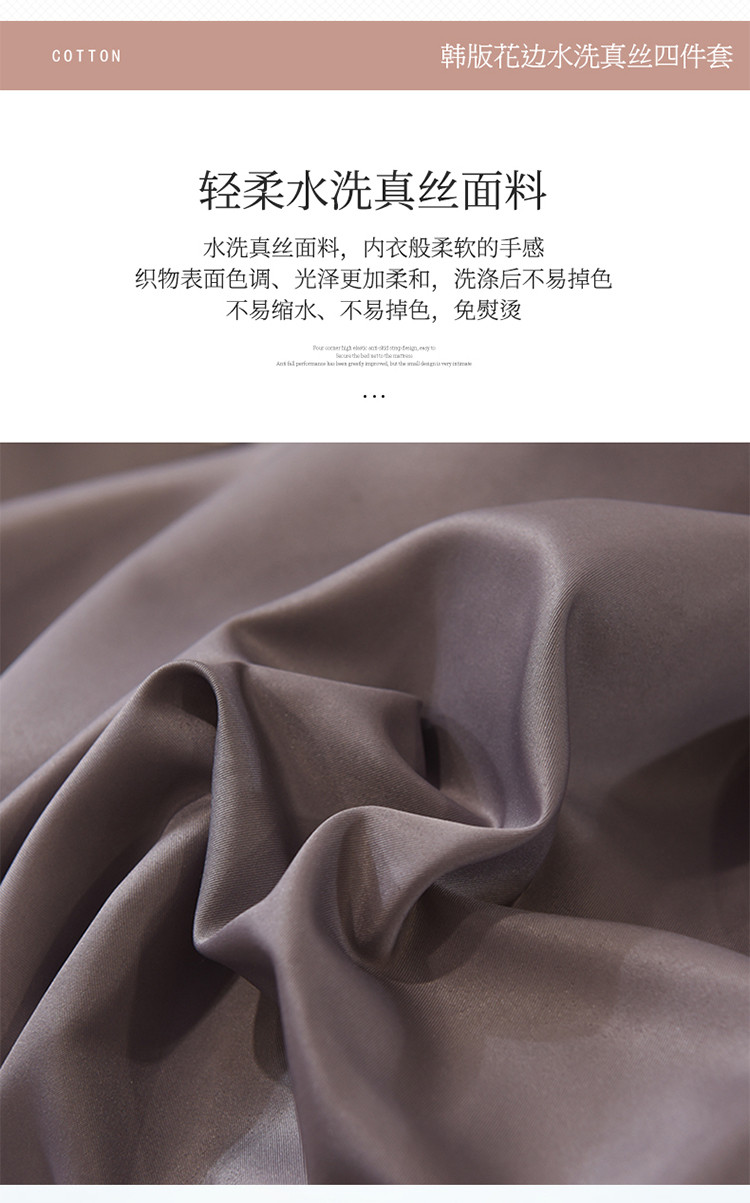 艾米家居 2025新款韩版双层花边轻奢浮雕系列水洗冰丝四件套 豆沙花边,豆沙花边
