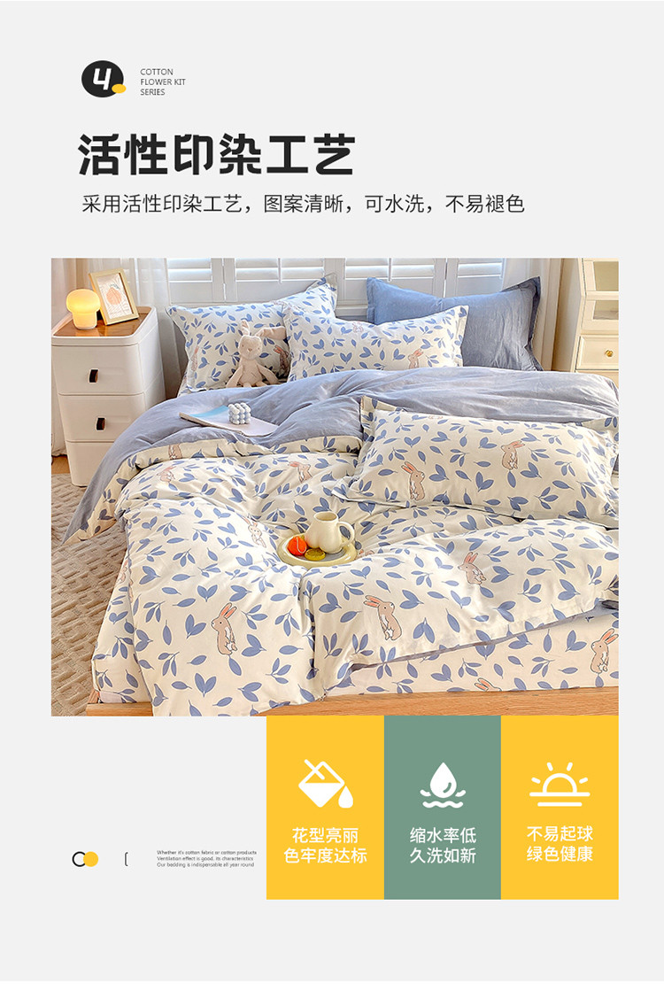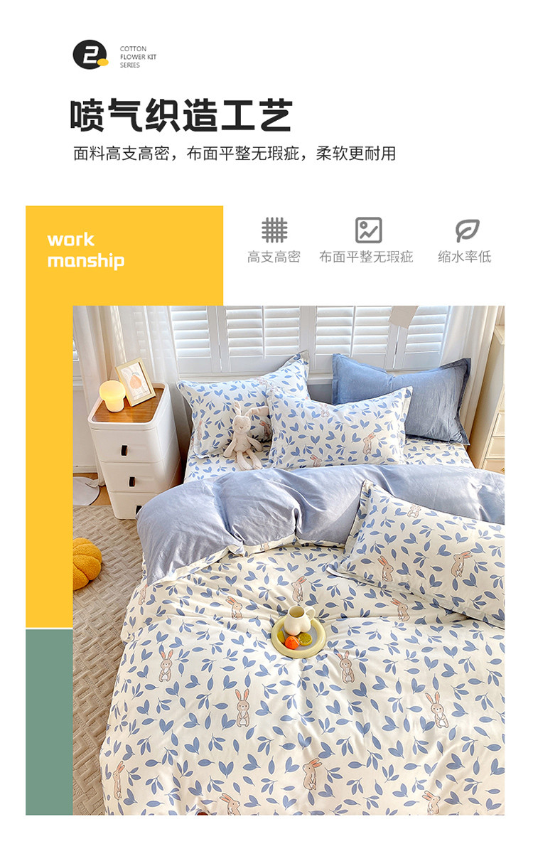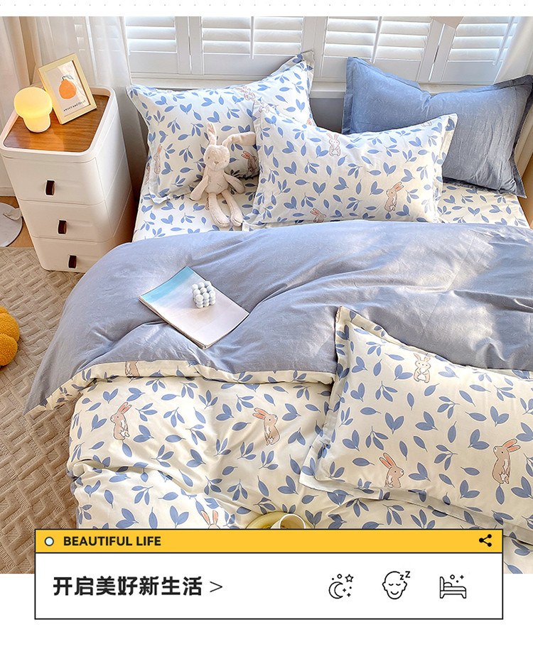 当前位置: 91家纺网 > 商品网购 > 床品套件 > 四件套 > 全棉普通四件套 > 拾物记 2022新款A类12868全棉喷气印花系列四件套 乖乖兔
