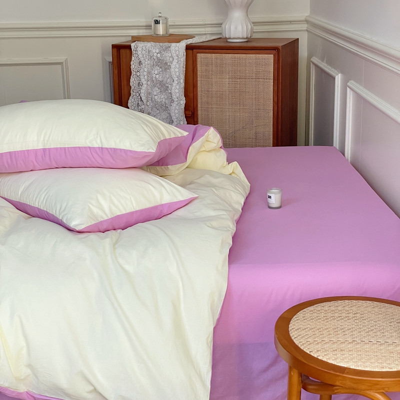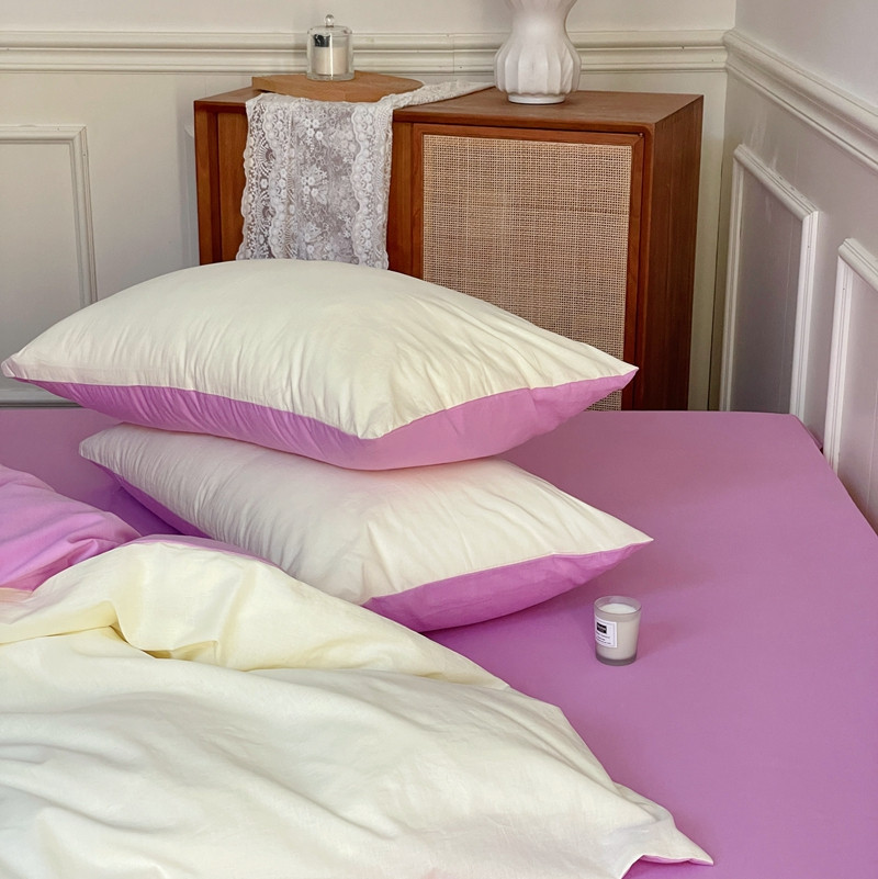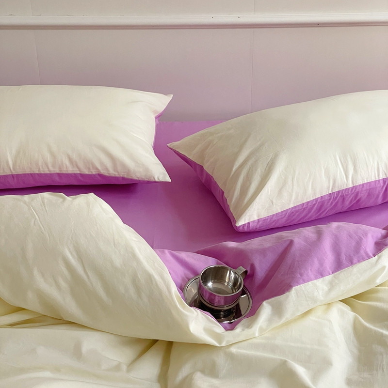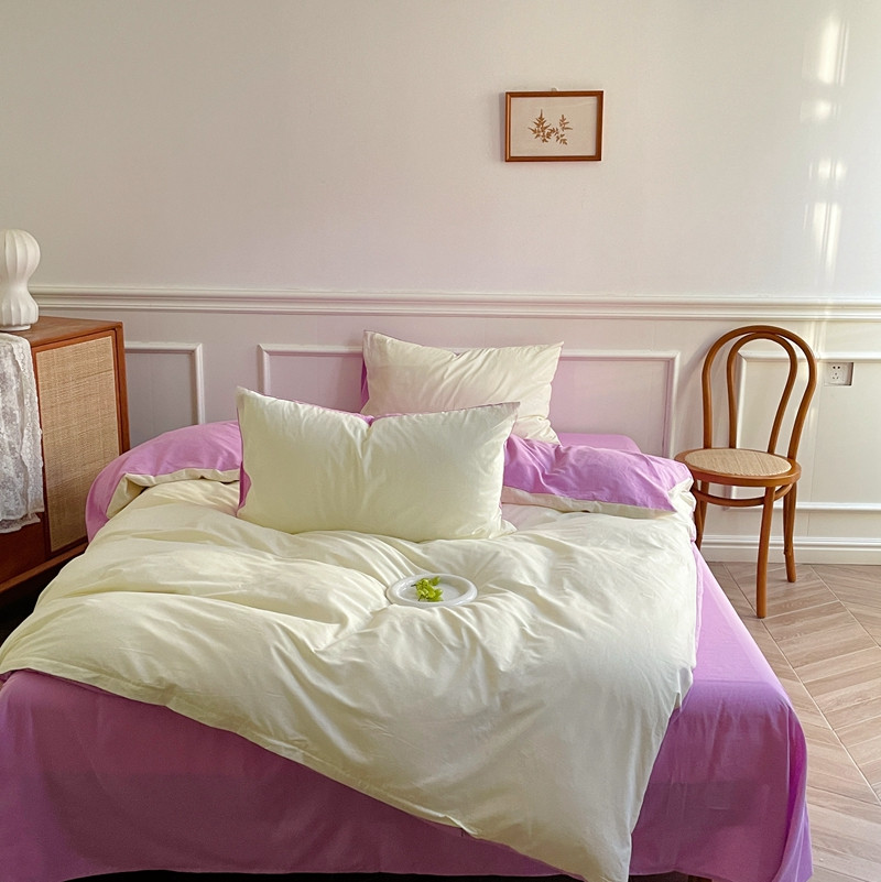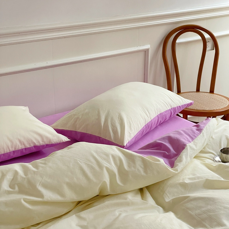 当前位置: 91家纺网 > 商品网购 > 床品套件 > 四件套 > 水洗棉四件套 > 窝米 2022夏季新品素色双拼水洗棉四件套 芝士双拼