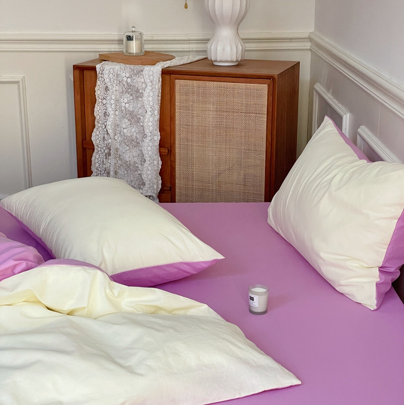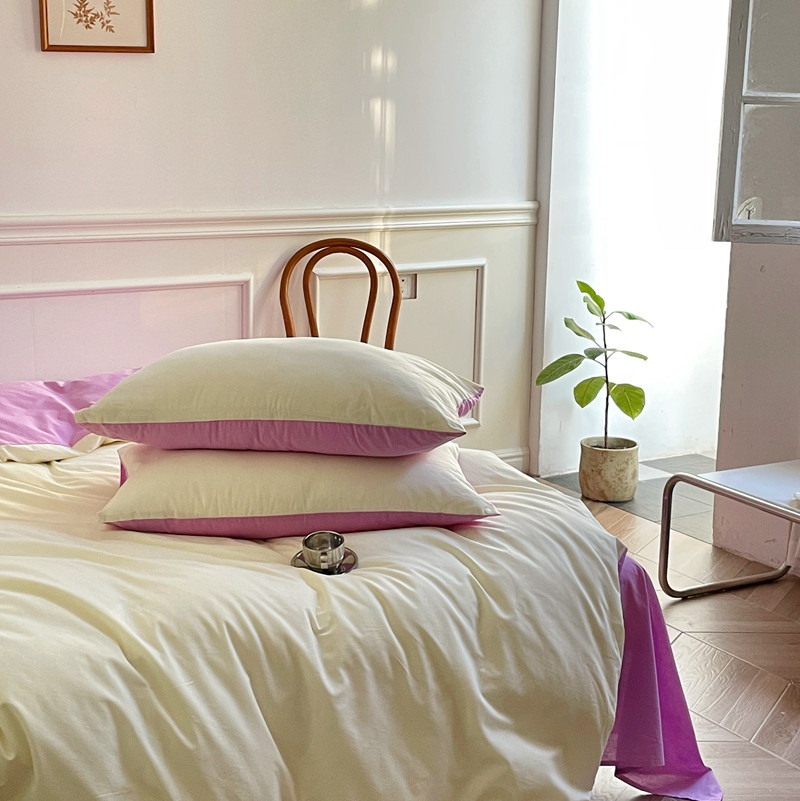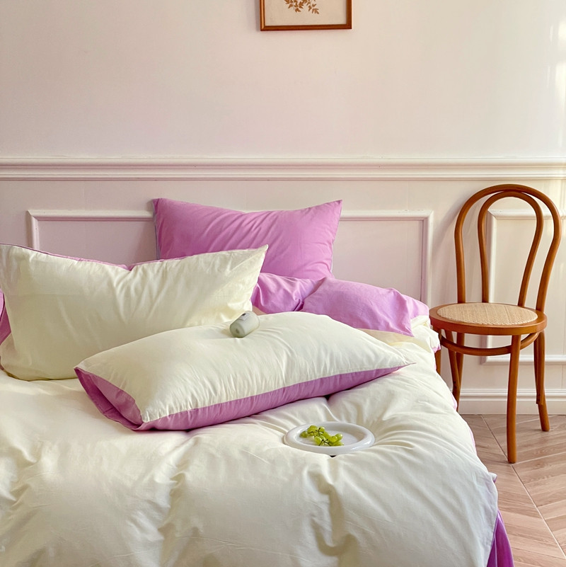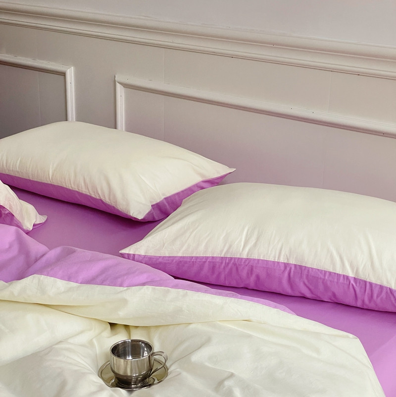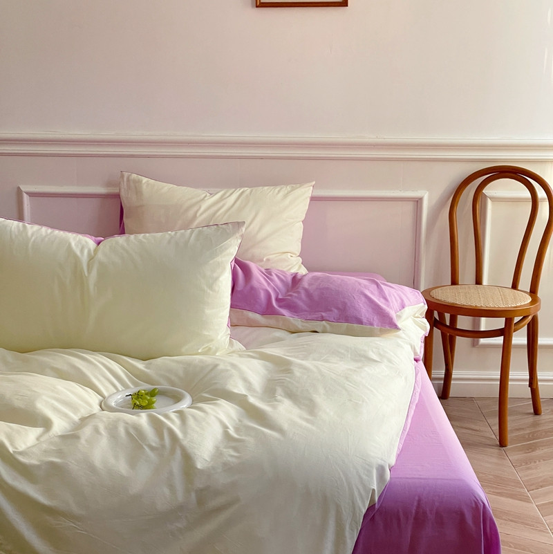 当前位置: 91家纺网 > 商品网购 > 床品套件 > 四件套 > 水洗棉四件套 > 窝米 2022夏季新品素色双拼水洗棉四件套 芝士双拼