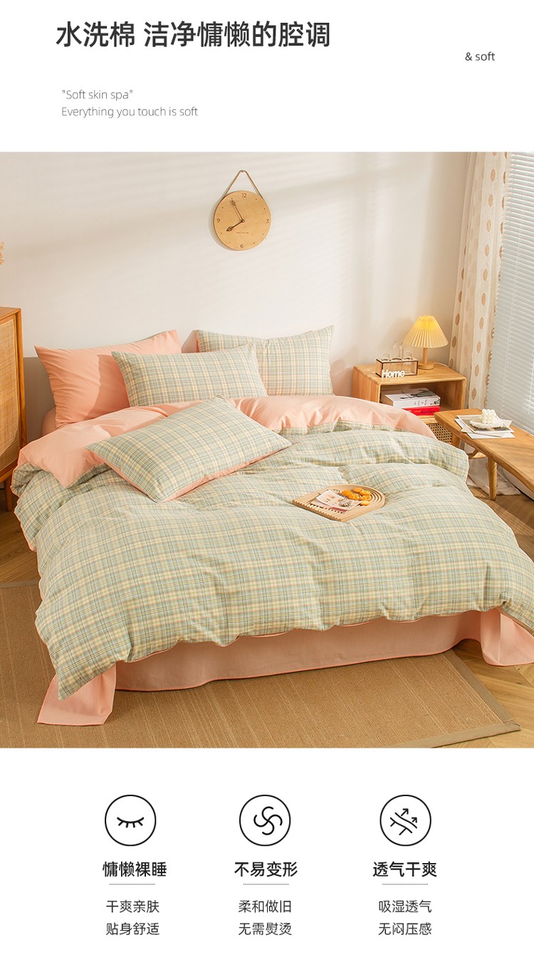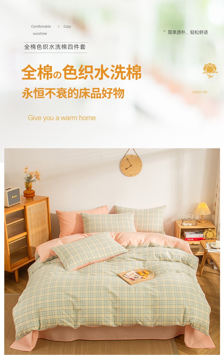 当前位置: 91家纺网 > 商品网购 > 床品套件 > 四件套 > 水洗棉四件套 > 柠萌家居 2022A类全棉色织水洗棉无印风格四件套 希拉绿