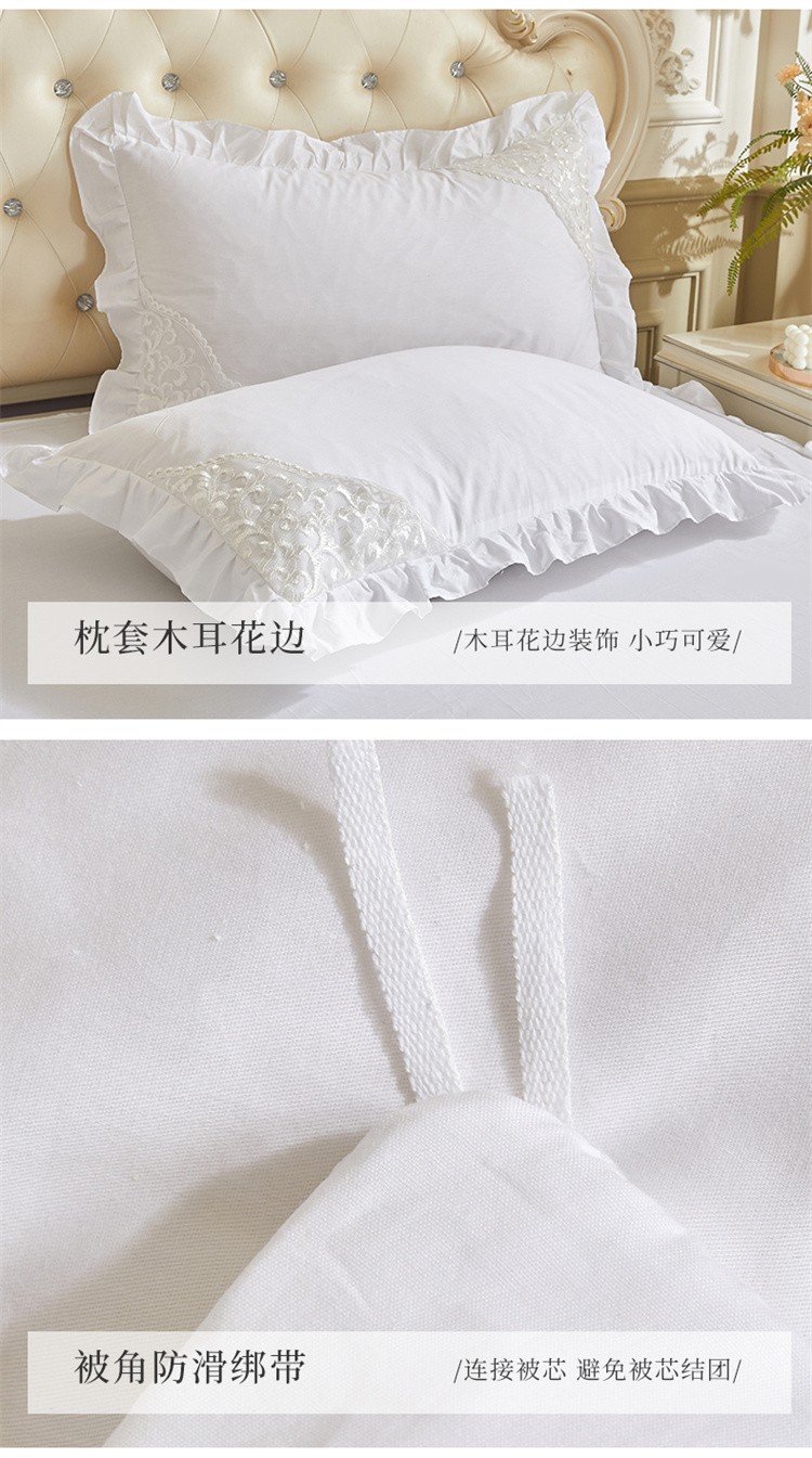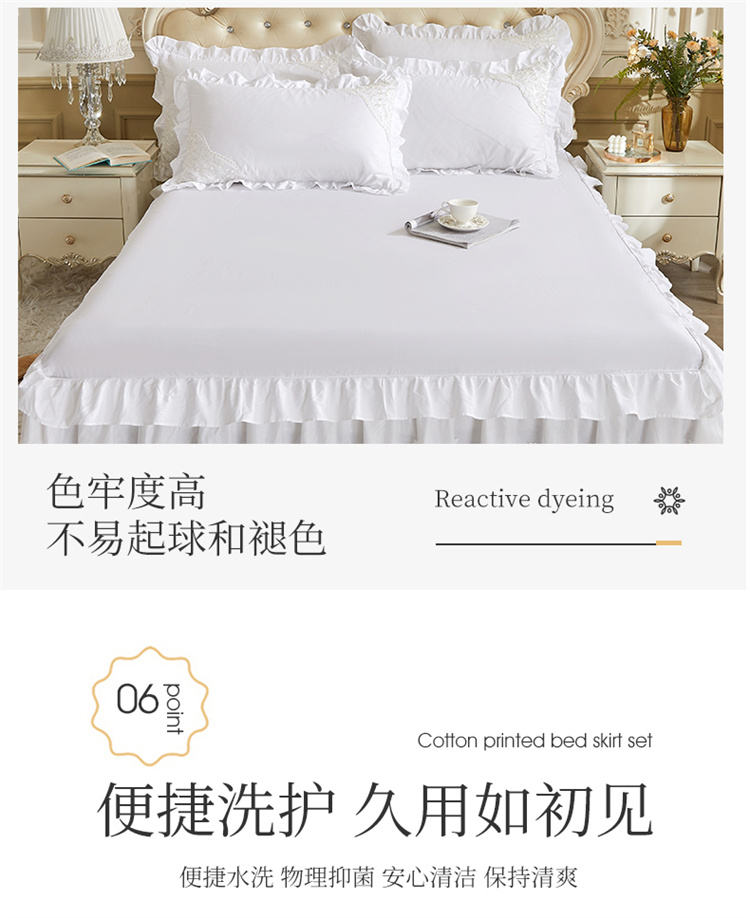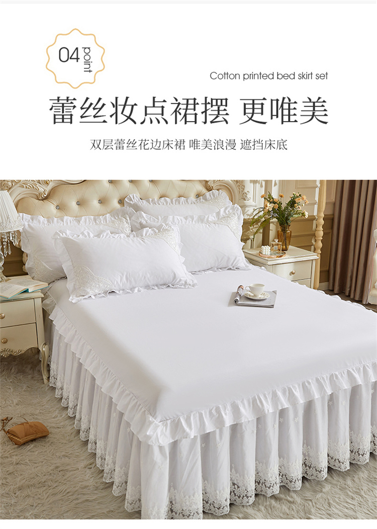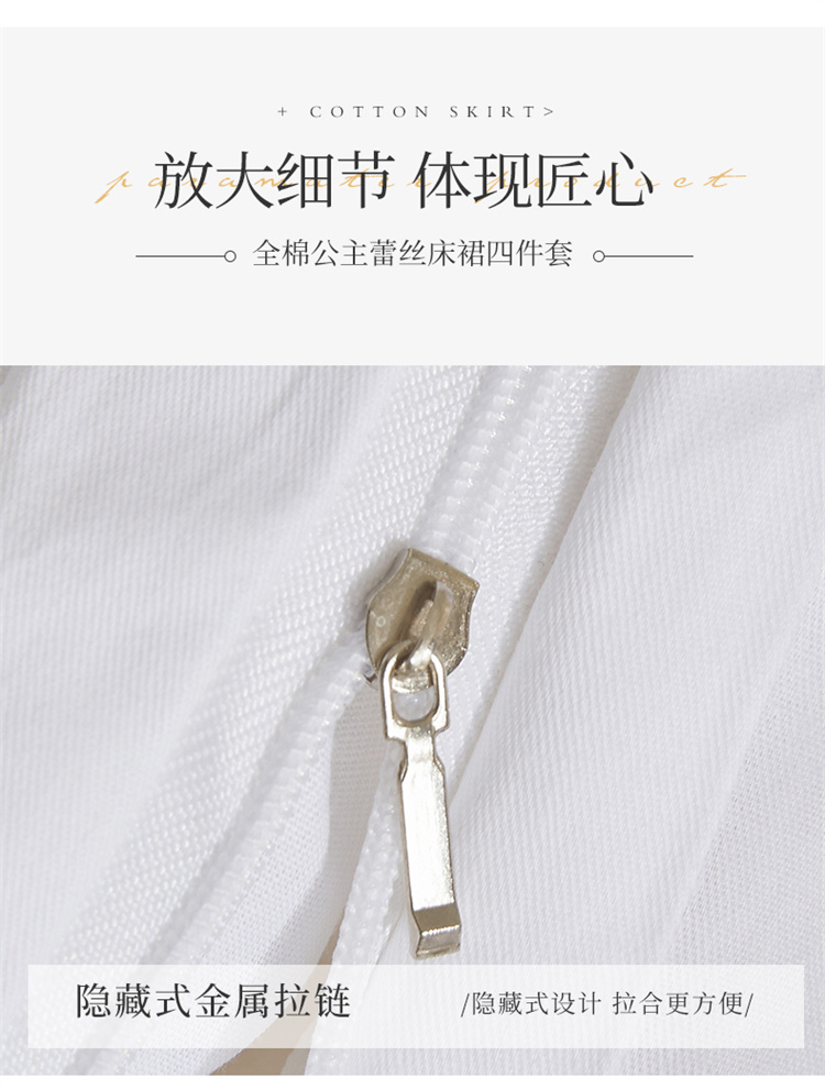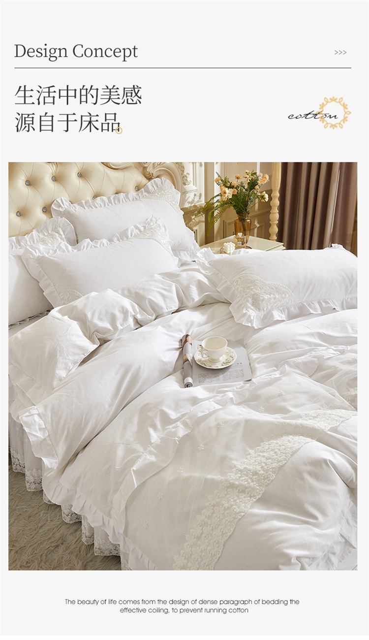 当前位置: 91家纺网 > 商品网购 > 床品套件 > 四件套 > 全棉普通四件套 > 十个点 2022新款纯色全棉公主风蕾丝花边床裙四件套 白色