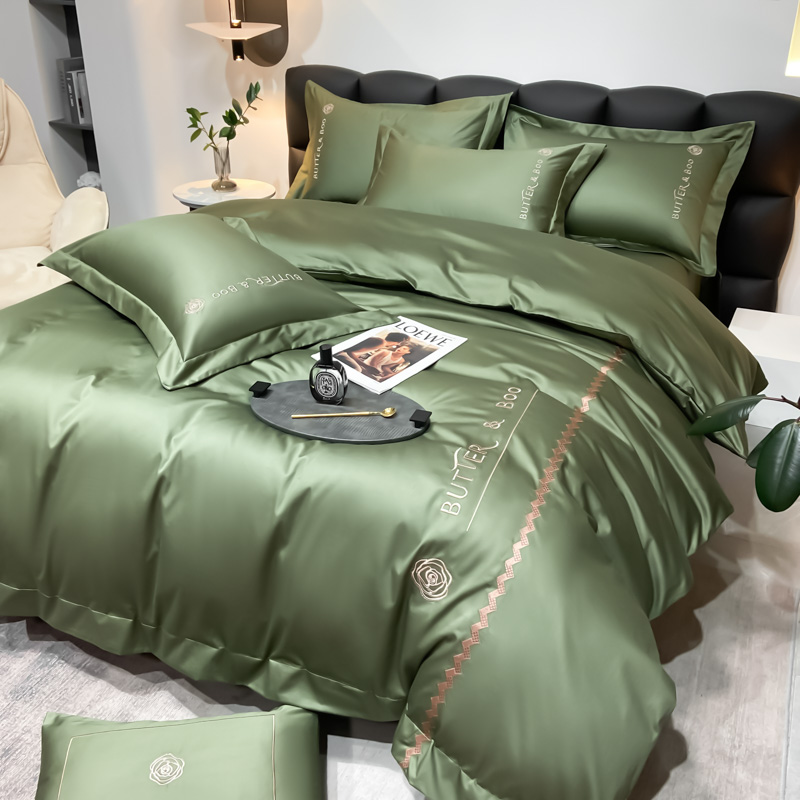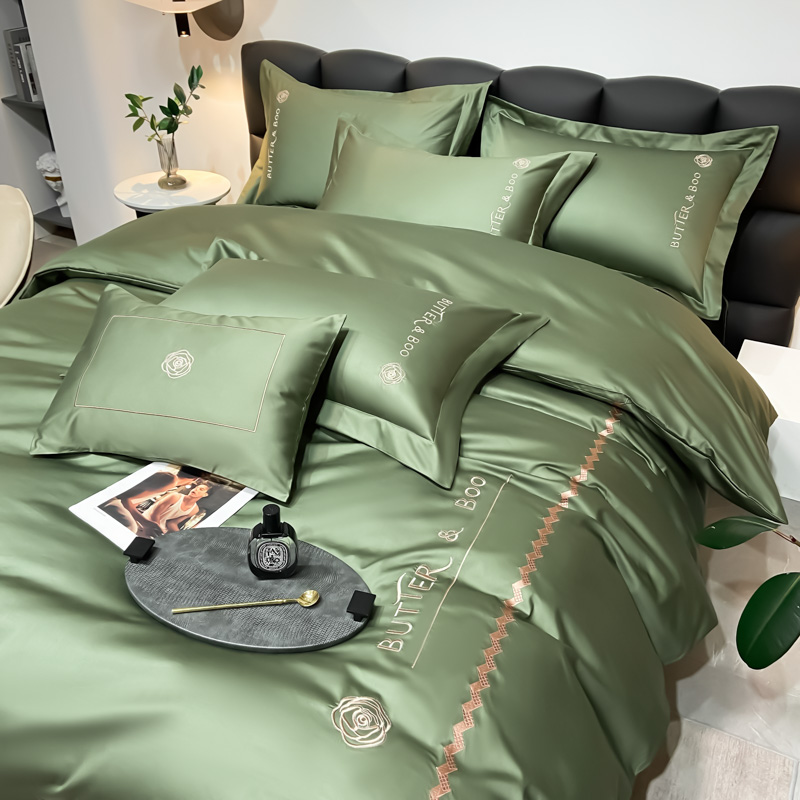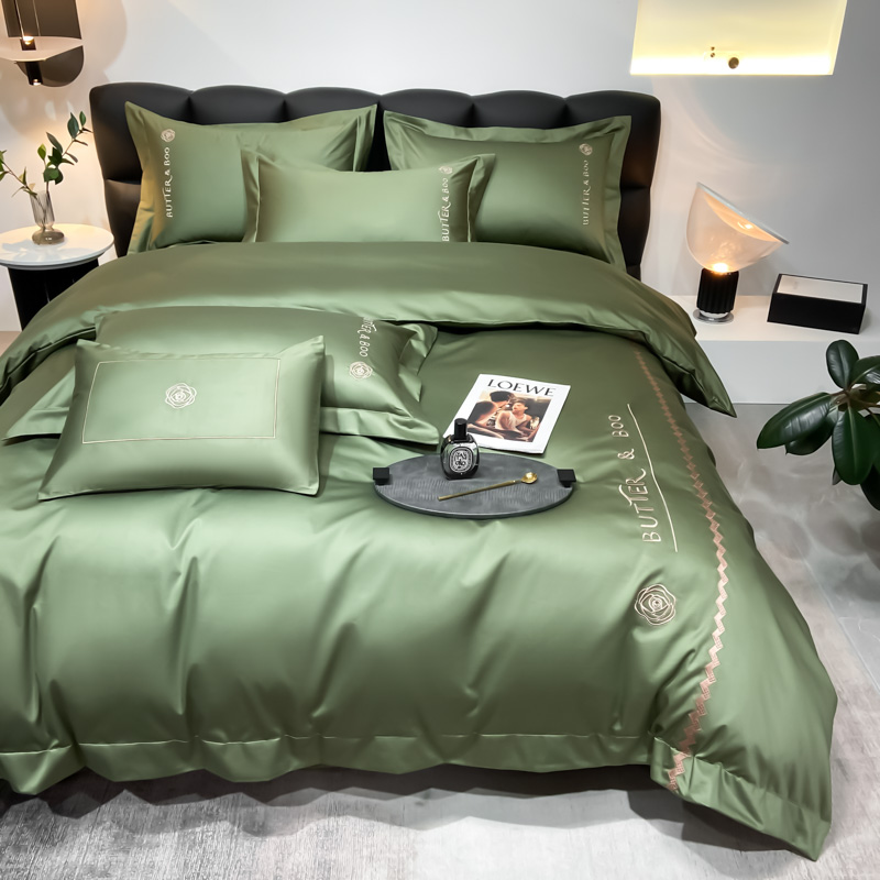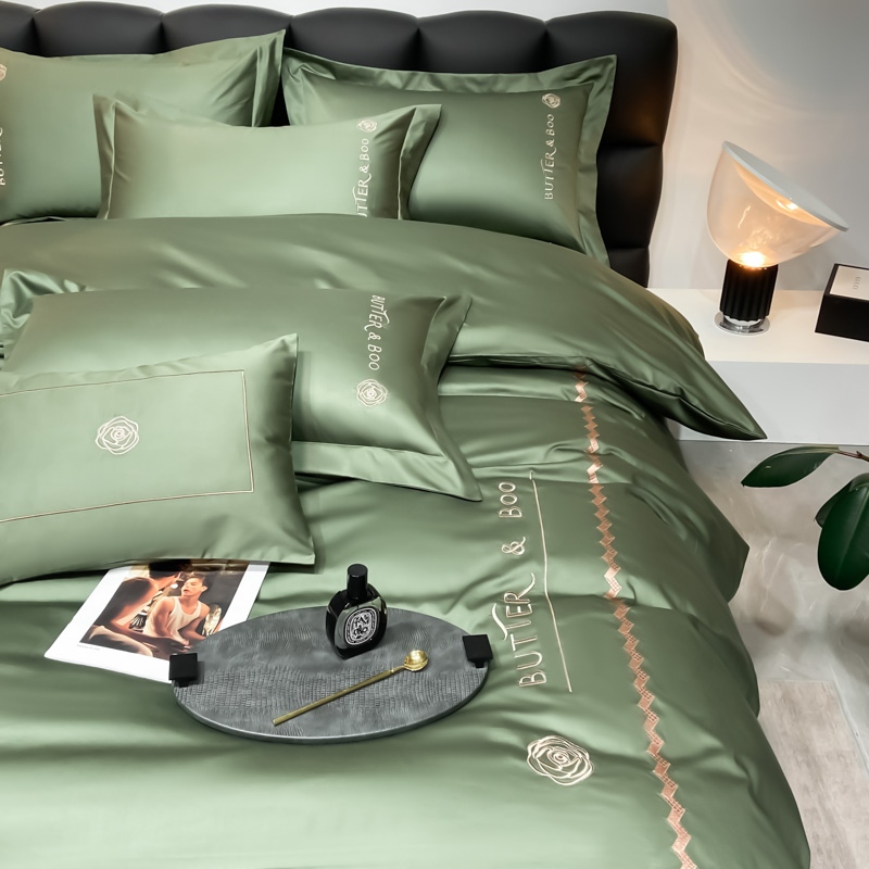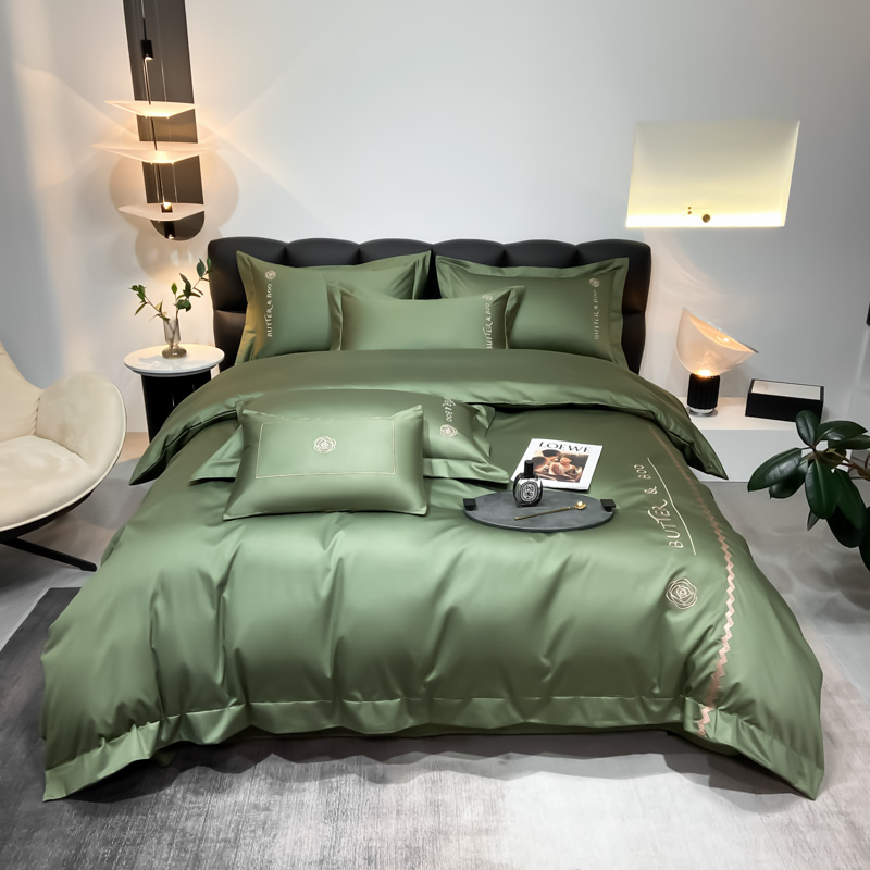 初拾 2022新款100支澳棉极简轻奢洛伊系列四件套-场景二 洛伊-摩登绿