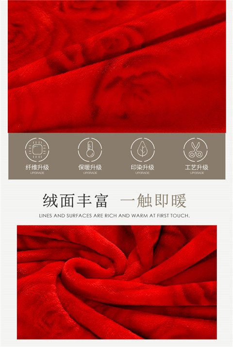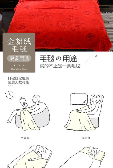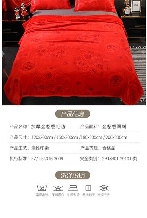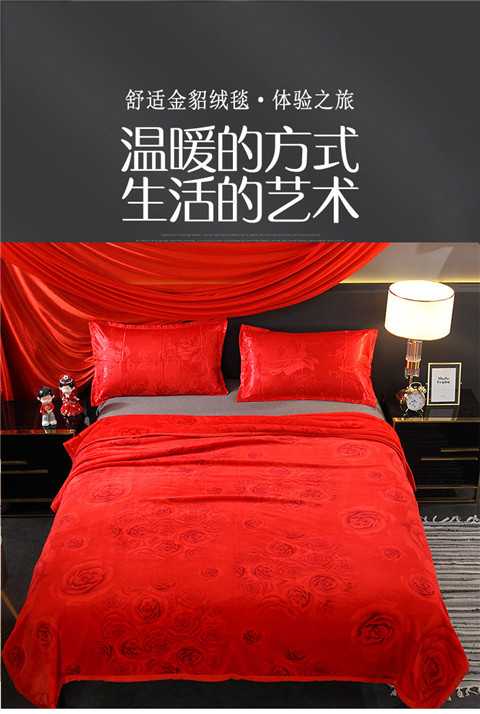 商品名称:爱她美家纺 2022新款300g金貂绒毛毯 大红玫瑰