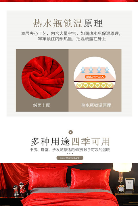 爱她美家纺 2022新款300g金貂绒毛毯 大红玫瑰