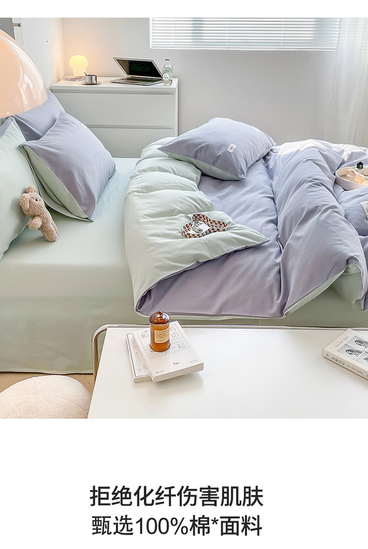 (总)798家纺 2025新款全棉双拼纯色良品四件套,碧绿+奶白,布鲁蓝+梧桐灰,豆绿+芍药粉,奶白+豆绿,奶白+青草绿,浅夏紫+芍药粉,肉肉粉+班尼咖,肉肉粉+千夏紫,肉肉粉+小雏菊,石灰+梧桐灰