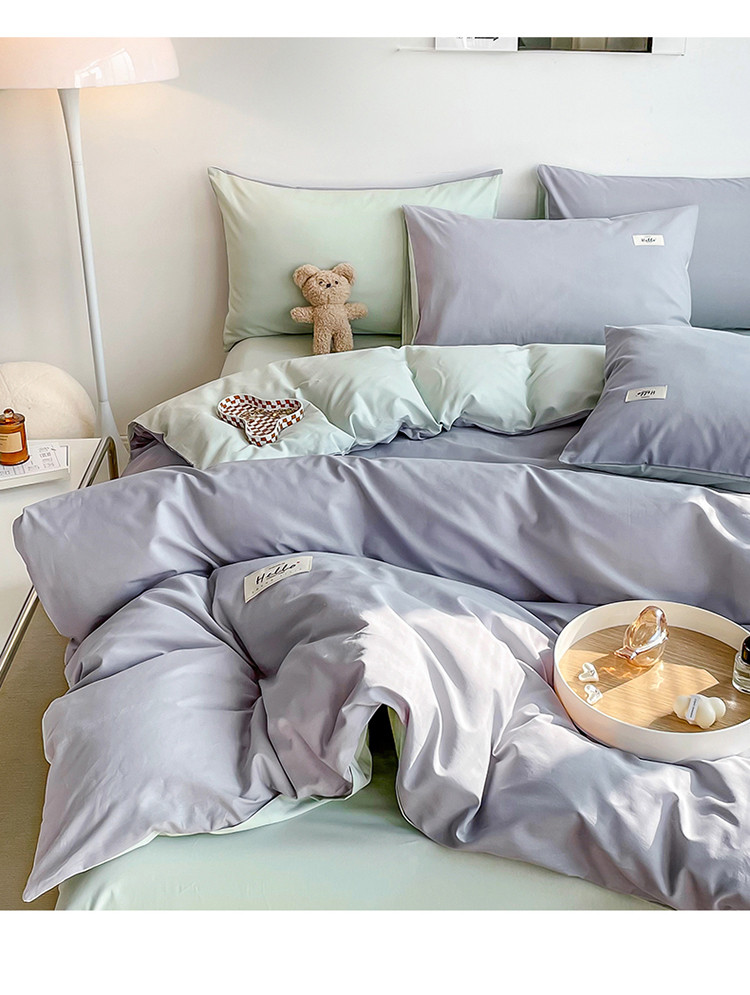 798家纺 2022新款全棉水洗棉被套 浅灰+豆绿