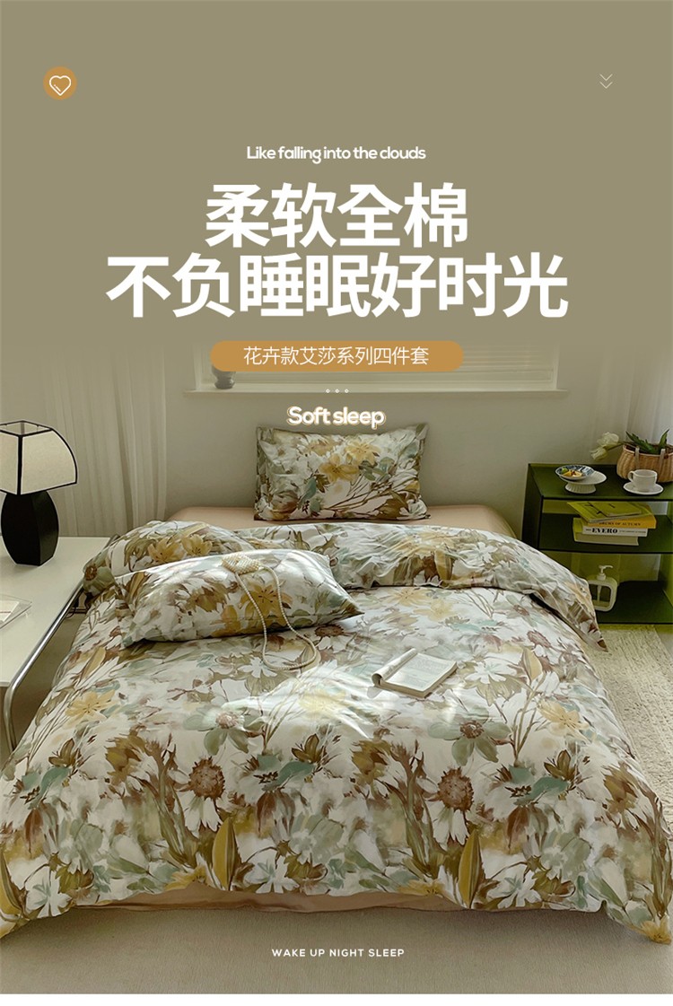 窝米 2022秋季新品全棉13370花卉系列四件套 疏影