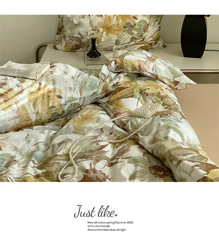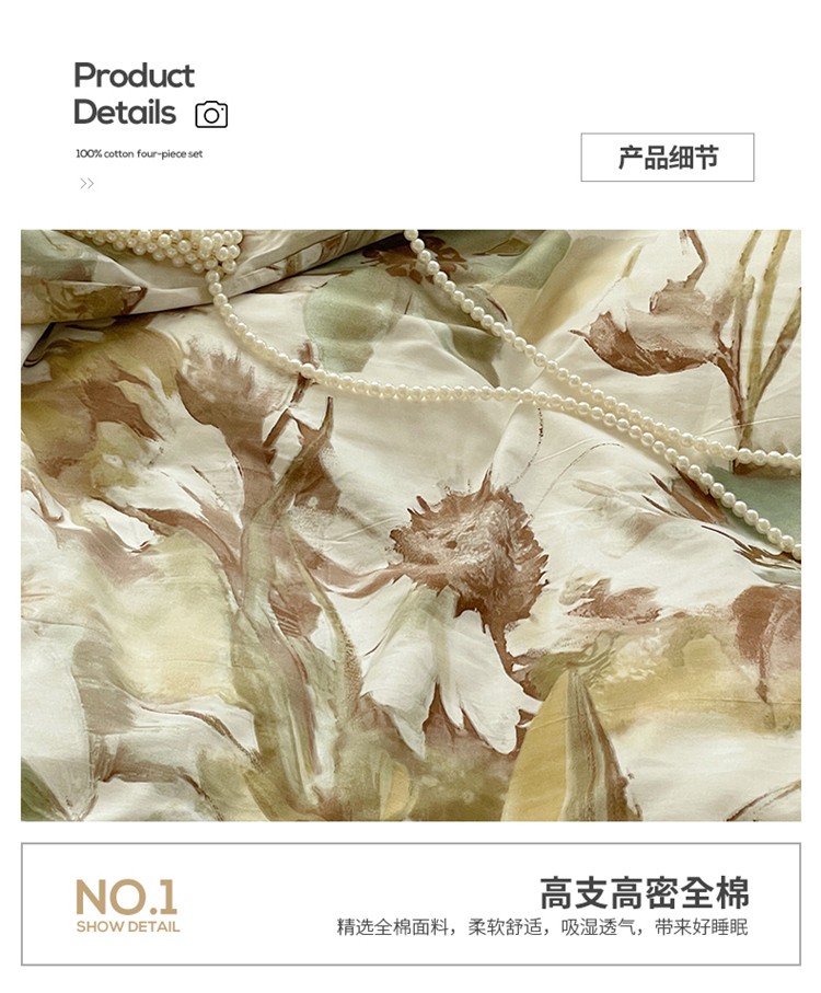 (总)窝米 2025新款全棉纯棉双层纱大版印花花卉四件套-第一组,赫美,绿野香,弥初,瑞优,云缦
