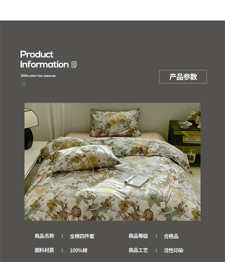 商品名称:窝米 2022秋季新品全棉13370花卉系列四件套 疏影