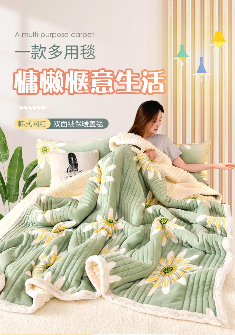 商品名称:圣楚 2024双面绒羊羔绒牛奶绒毛毯多功能午睡毯盖毯直播 冬日暖阳