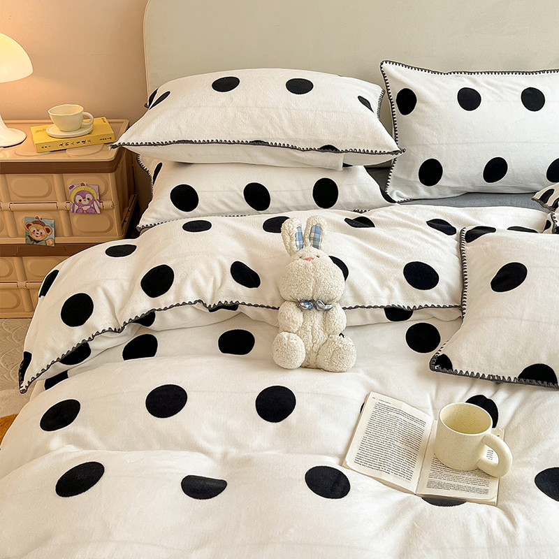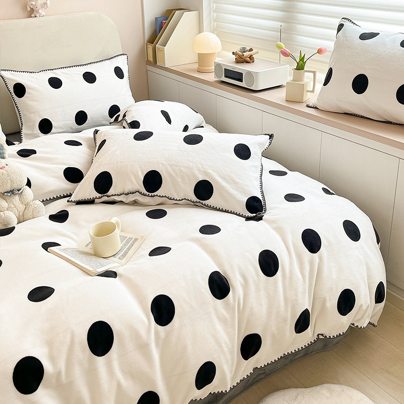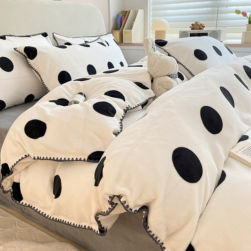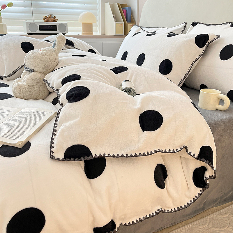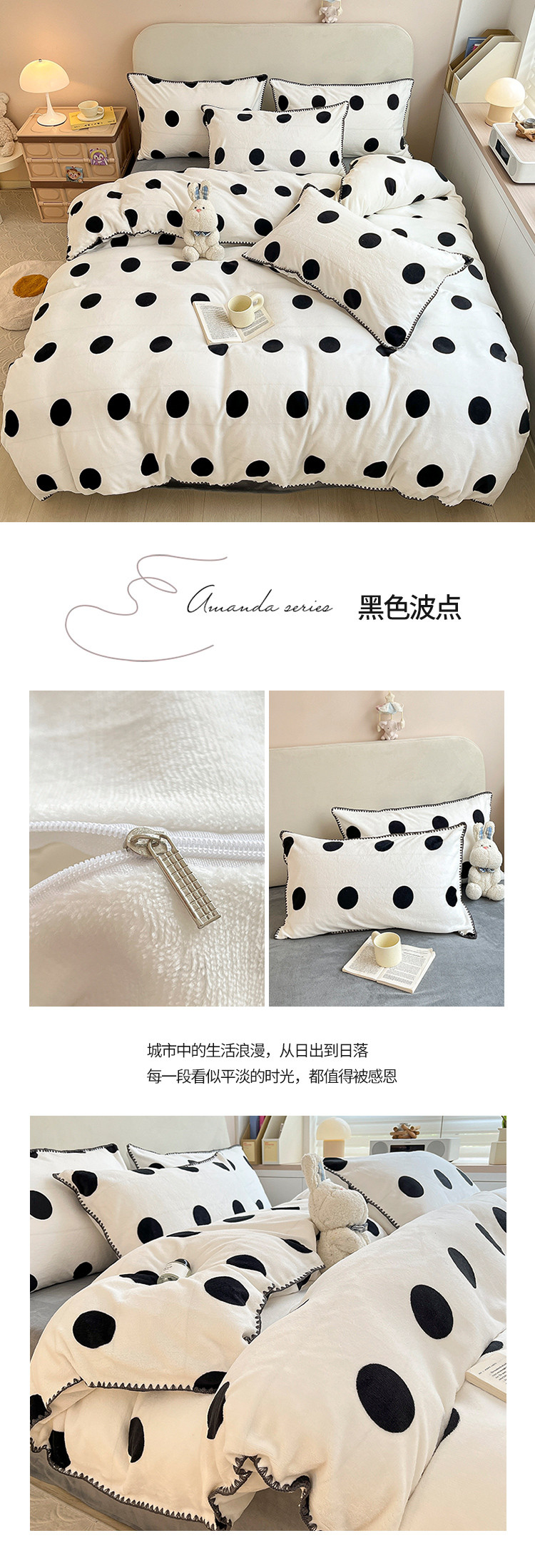 当前位置: 91家纺网 > 商品网购 > 床品套件 > 四件套 > 牛奶绒四件套 > 安哆啦 新款贝壳边工艺牛奶绒珊瑚绒四件套单被套 黑白波点