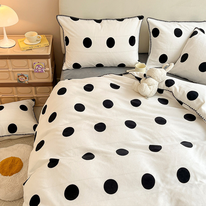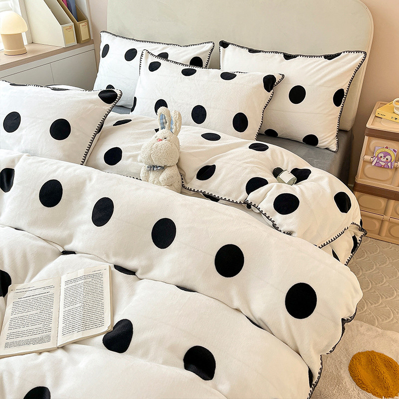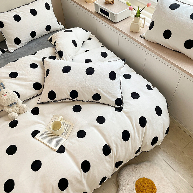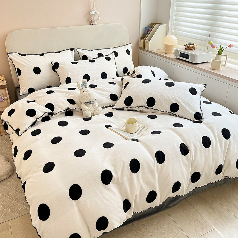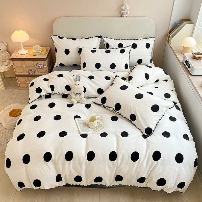当前位置: 91家纺网 > 商品网购 > 床品套件 > 四件套 > 牛奶绒四件套 > 安哆啦 新款贝壳边工艺牛奶绒珊瑚绒四件套单被套 黑白波点