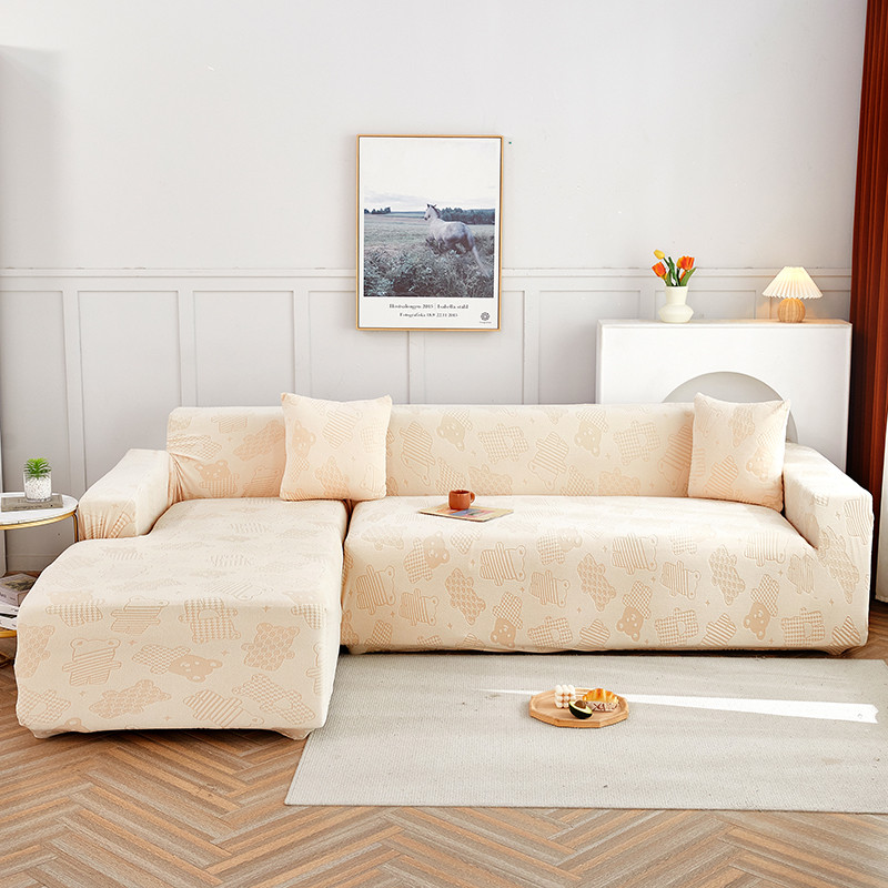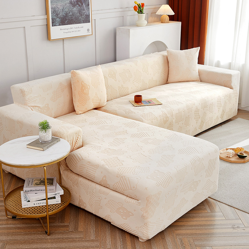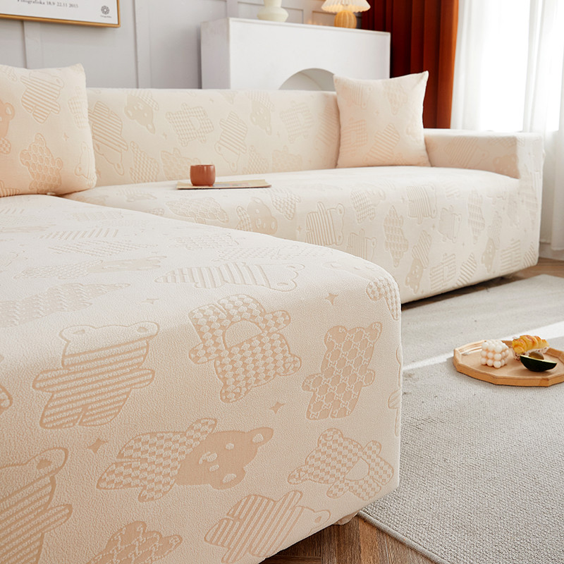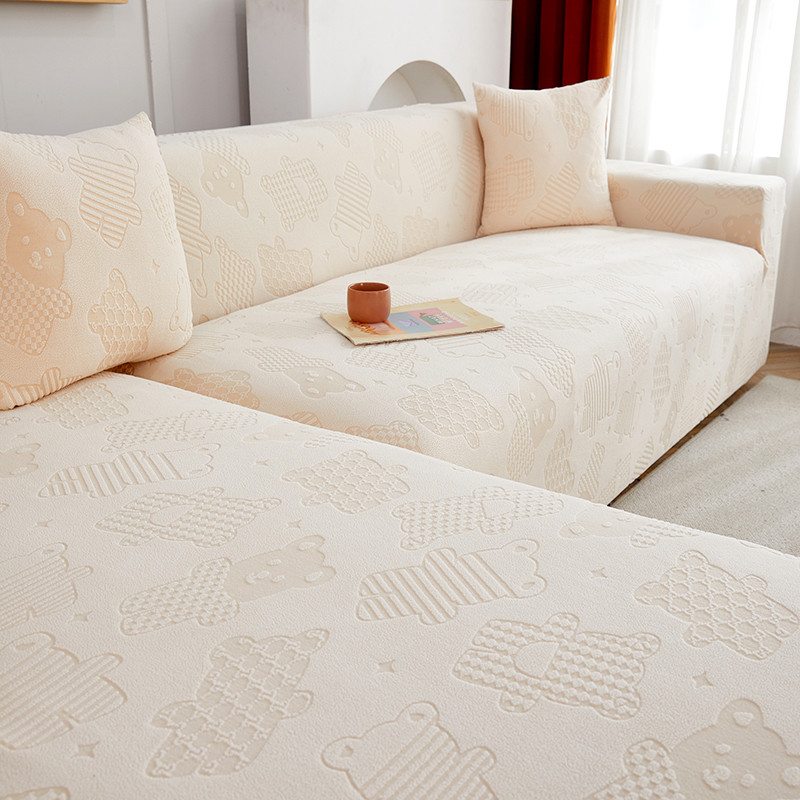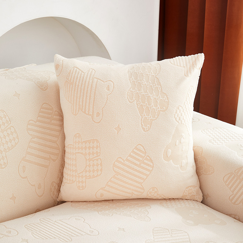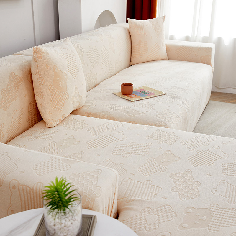 商品名称:逐日沙发套 2023新款阳离子雕花沙发套 饼干熊 米黄