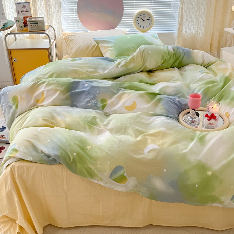 商品名称:昔可家纺 2022新款全棉ins云朵系列四件套 绿色星空-被套星空