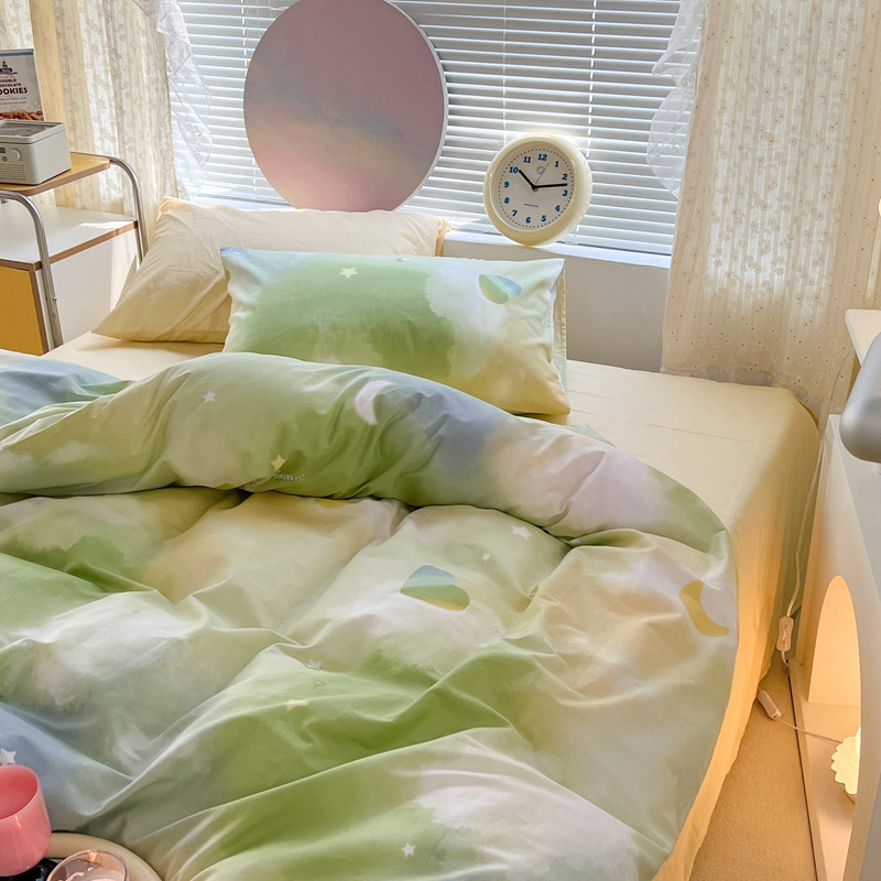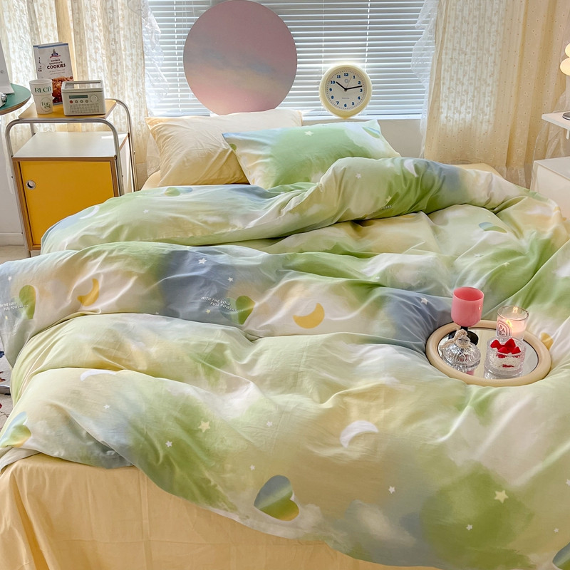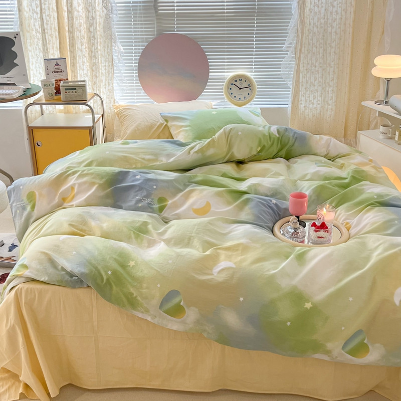 昔可家纺 2022新款全棉ins云朵系列四件套 绿色星空-被套星空