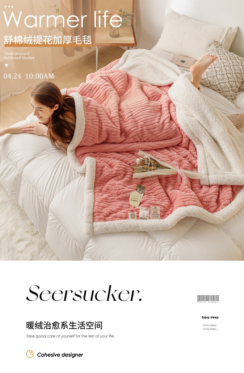 简爱-2025加厚舒棉绒羊羔绒盖毯毛毯 水漾纹-樱花粉