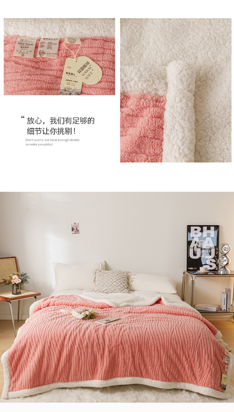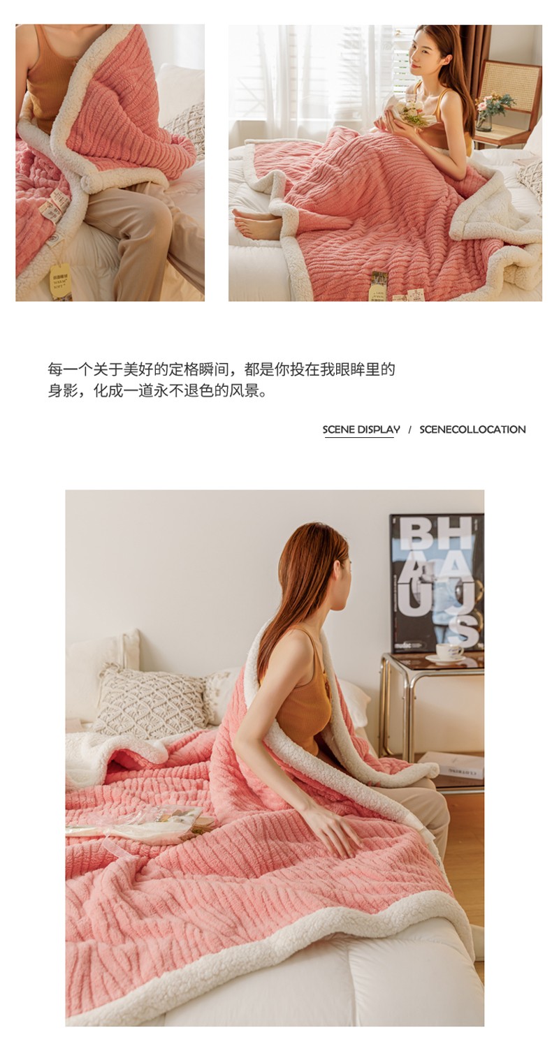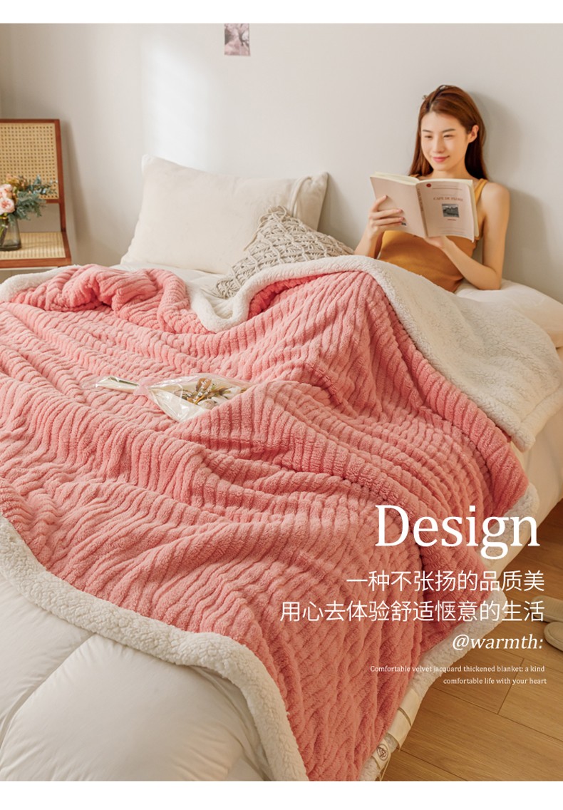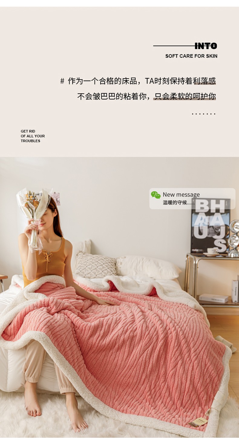 商品名称:简爱-2025加厚舒棉绒羊羔绒盖毯毛毯 水漾纹-樱花粉