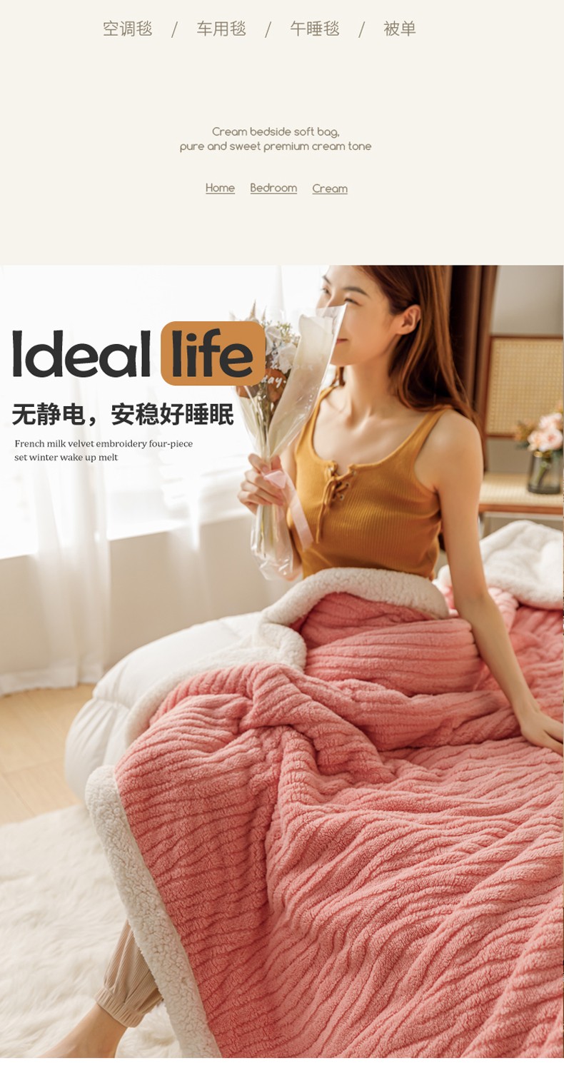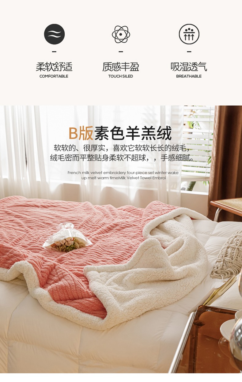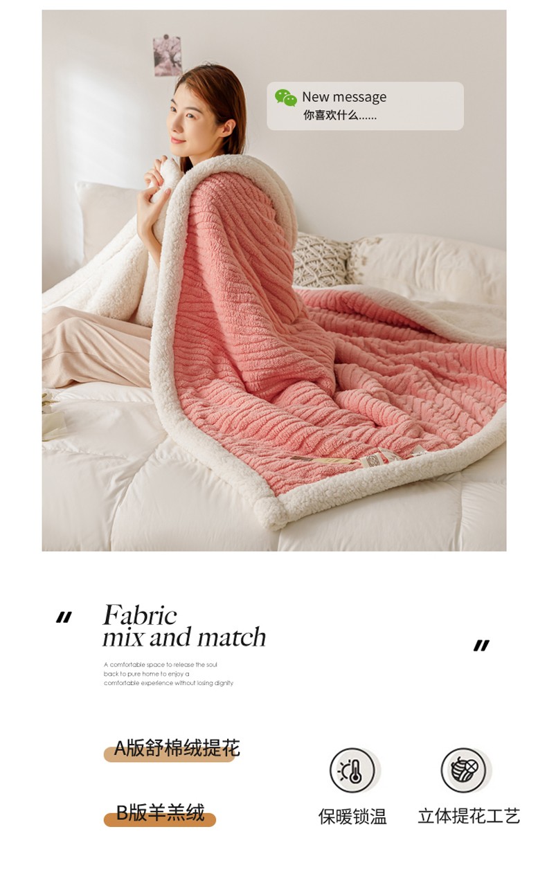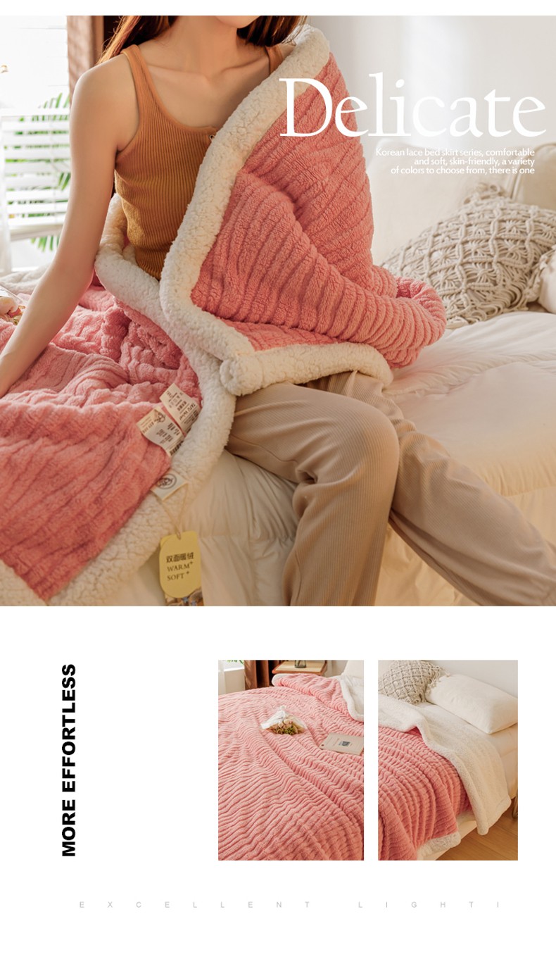 商品名称:简爱-2025加厚舒棉绒羊羔绒盖毯毛毯 水漾纹-樱花粉