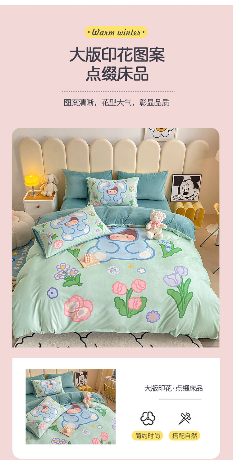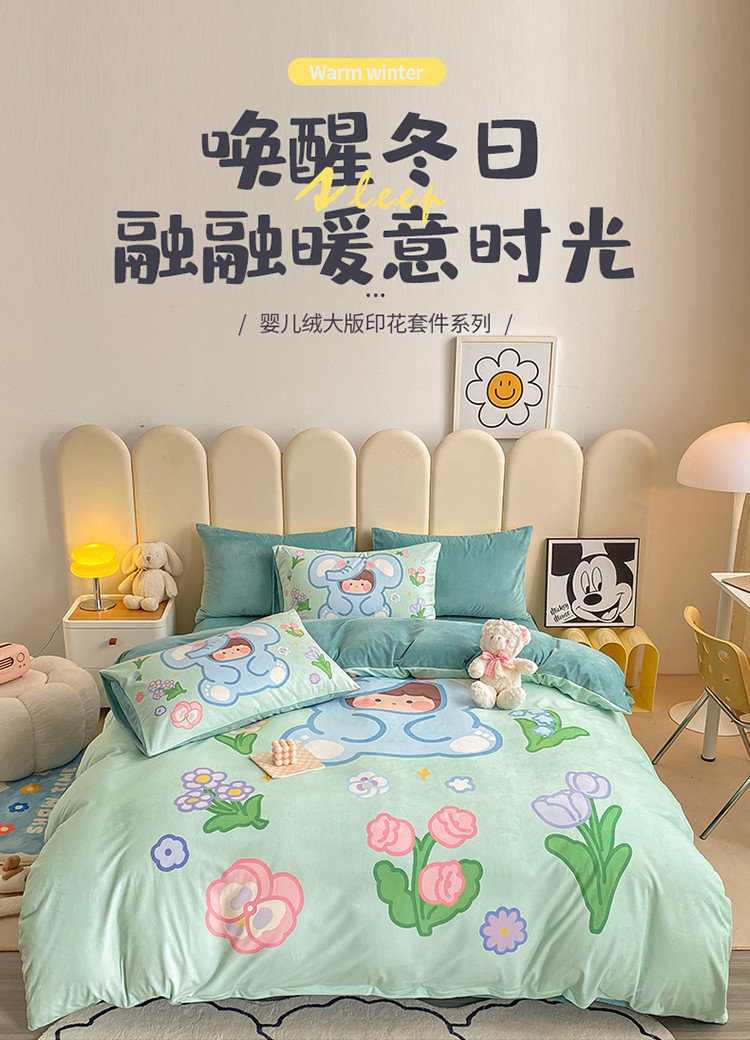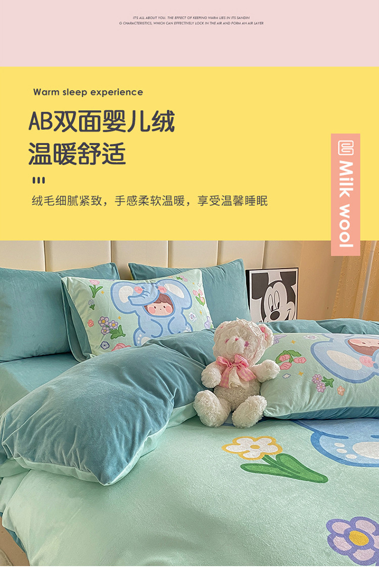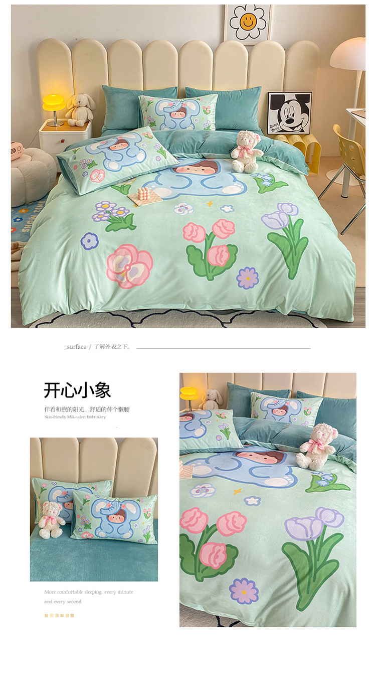 当前位置: 91家纺网 > 商品网购 > 床品套件 > 四件套 > 宝宝绒四件套 > 博雅 2022新款婴儿绒大版印花系列四件套 开心小象