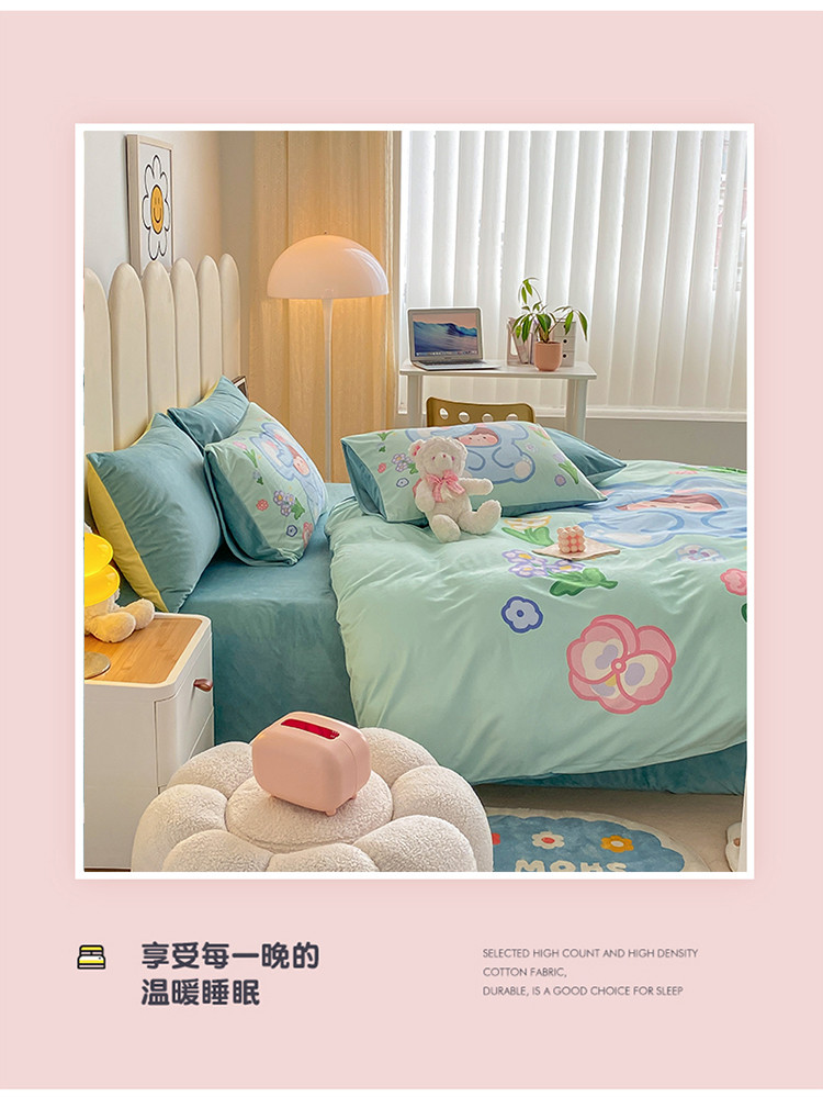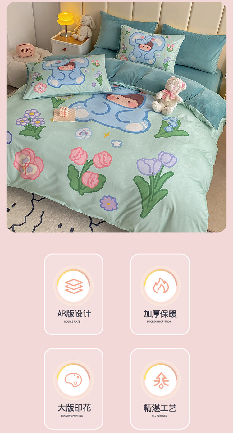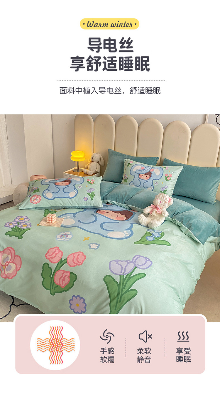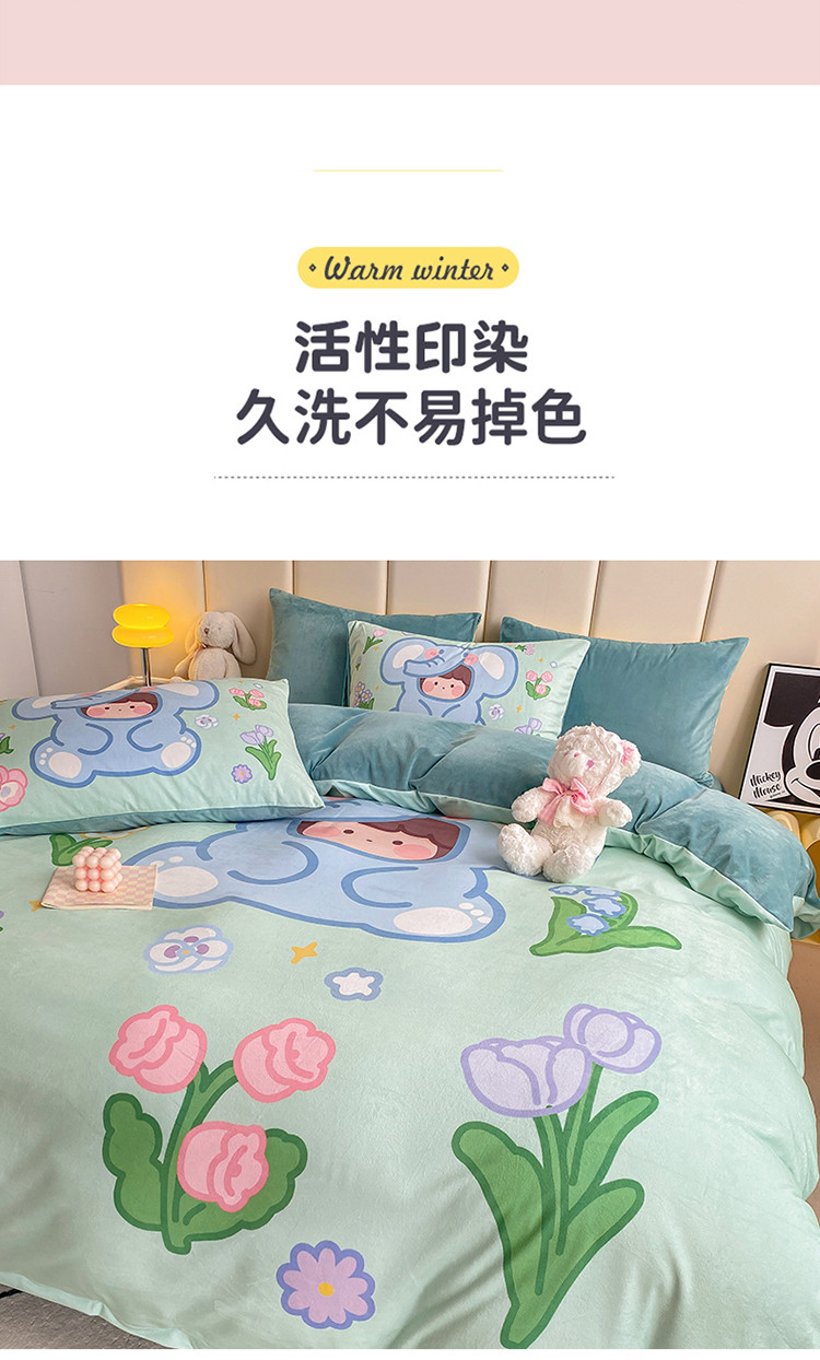 当前位置: 91家纺网 > 商品网购 > 床品套件 > 四件套 > 宝宝绒四件套 > 博雅 2022新款婴儿绒大版印花系列四件套 开心小象