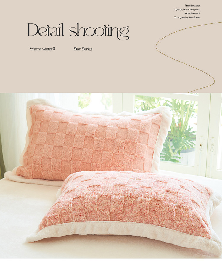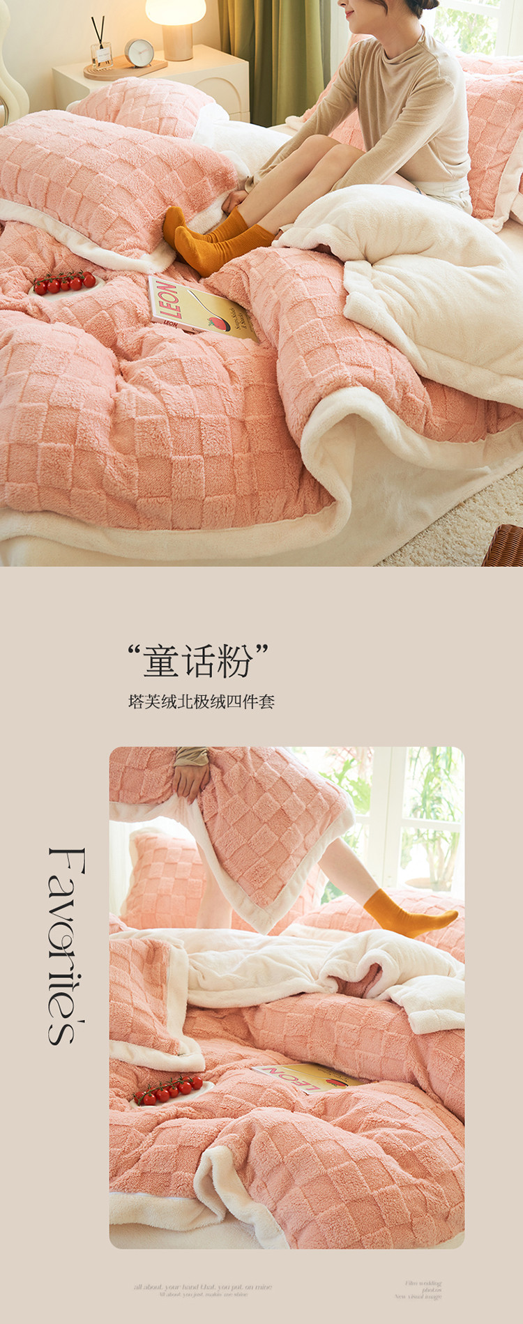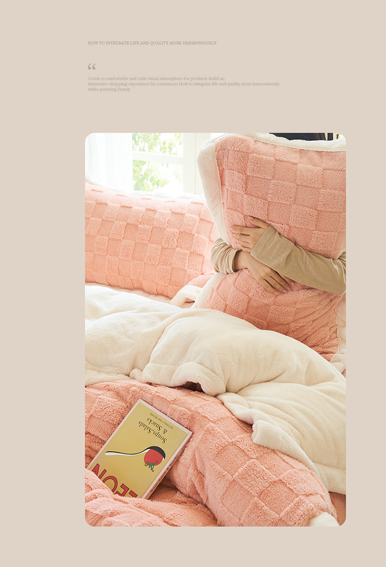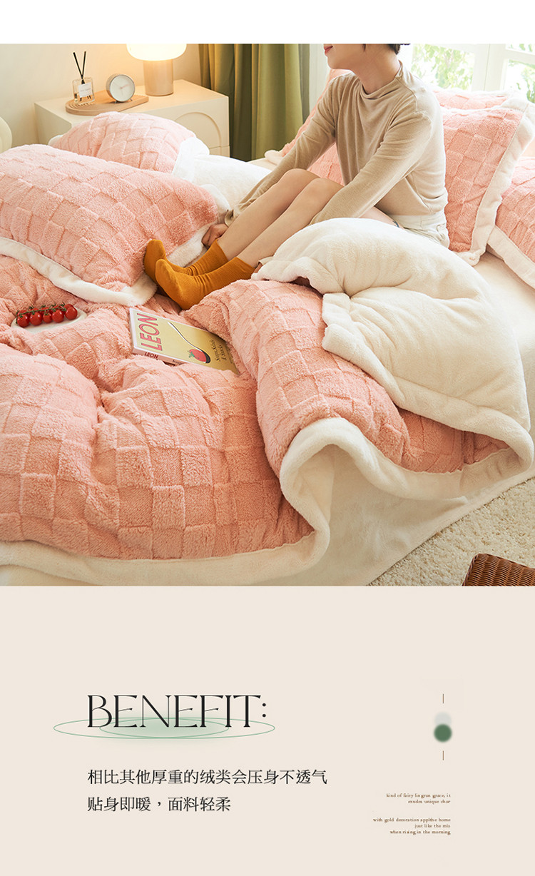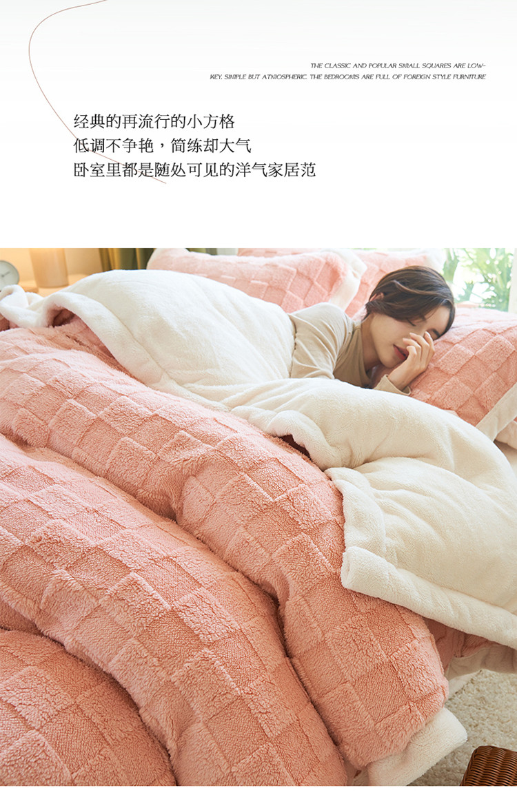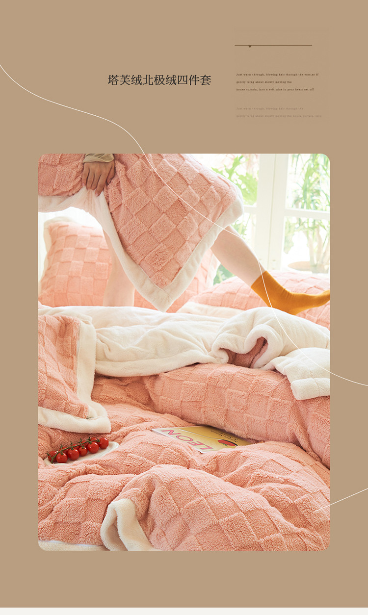 商品名称:晨曦2022新塔芙绒北极绒牛奶绒法莱绒四件套 小方格-童话粉