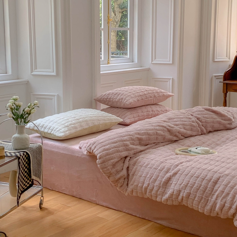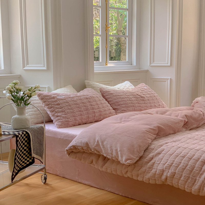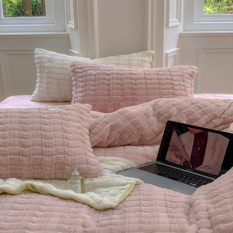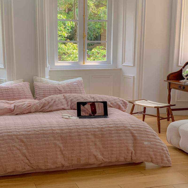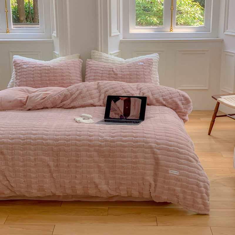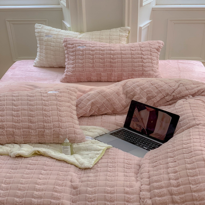 商品名称:洋铭区 2022新款獭兔绒四件套 獭兔绒-甜粉