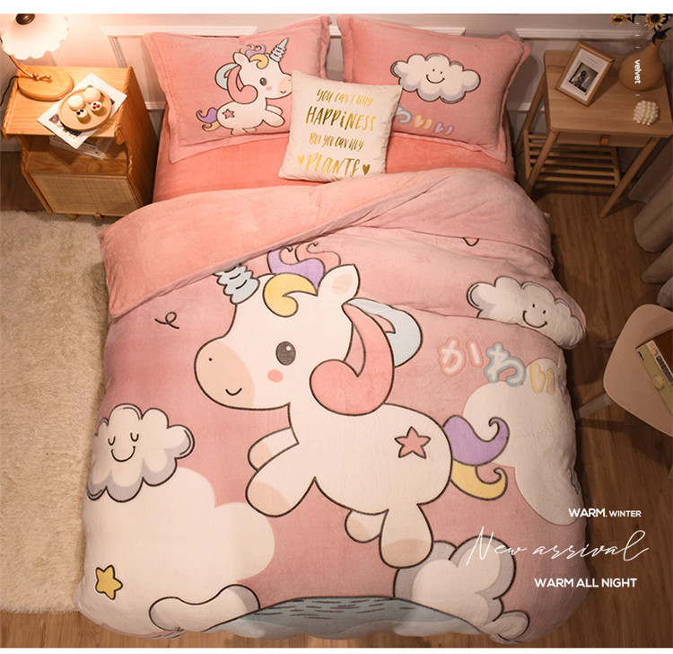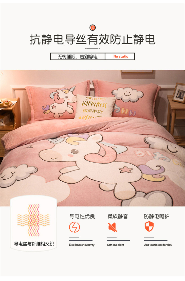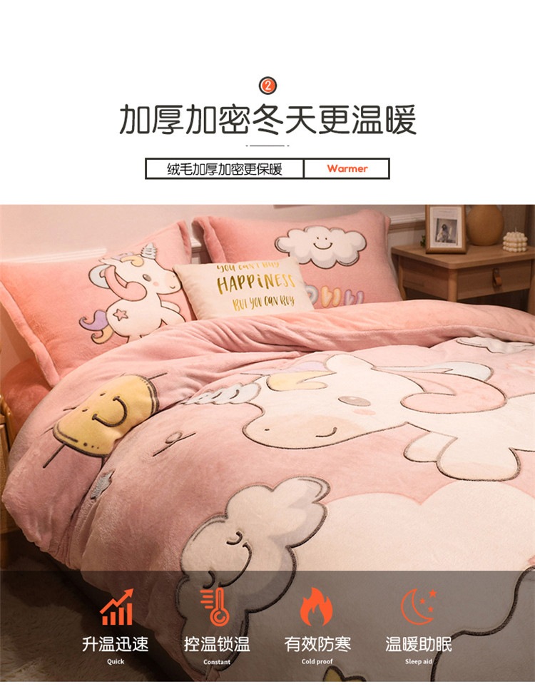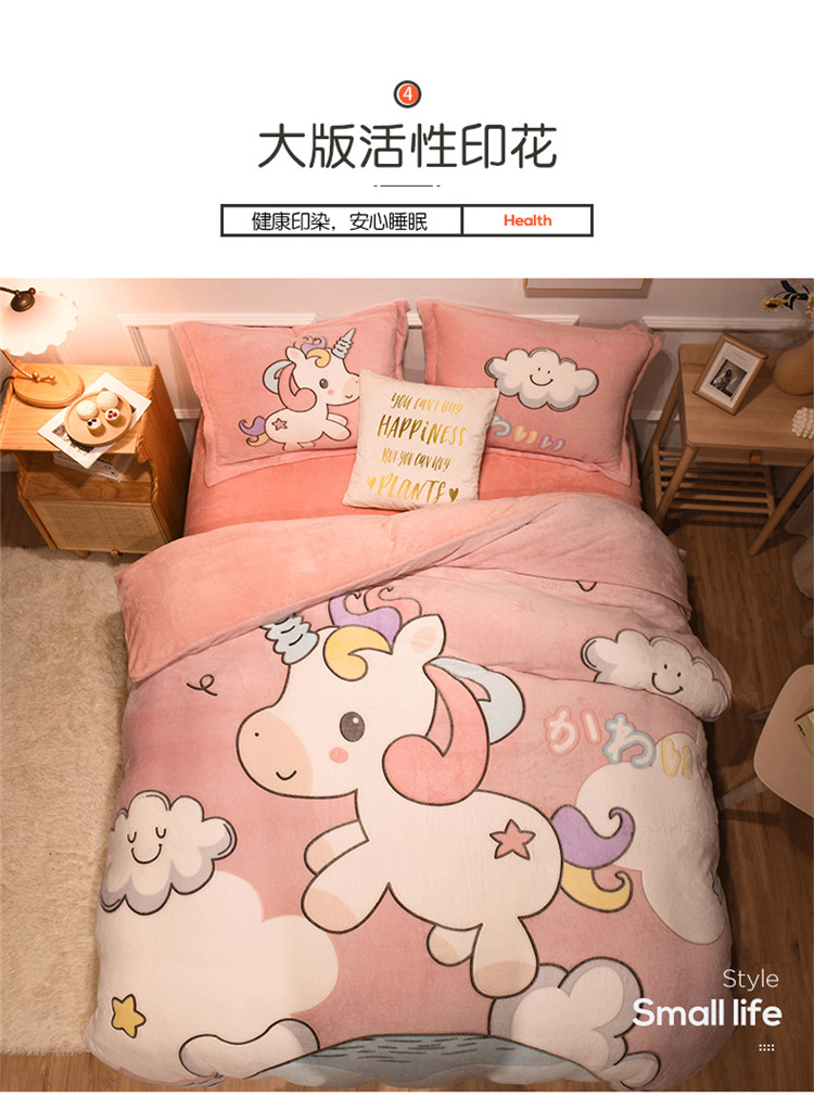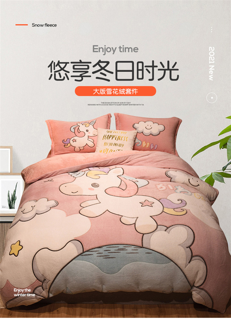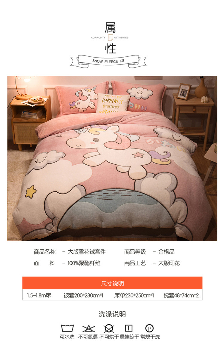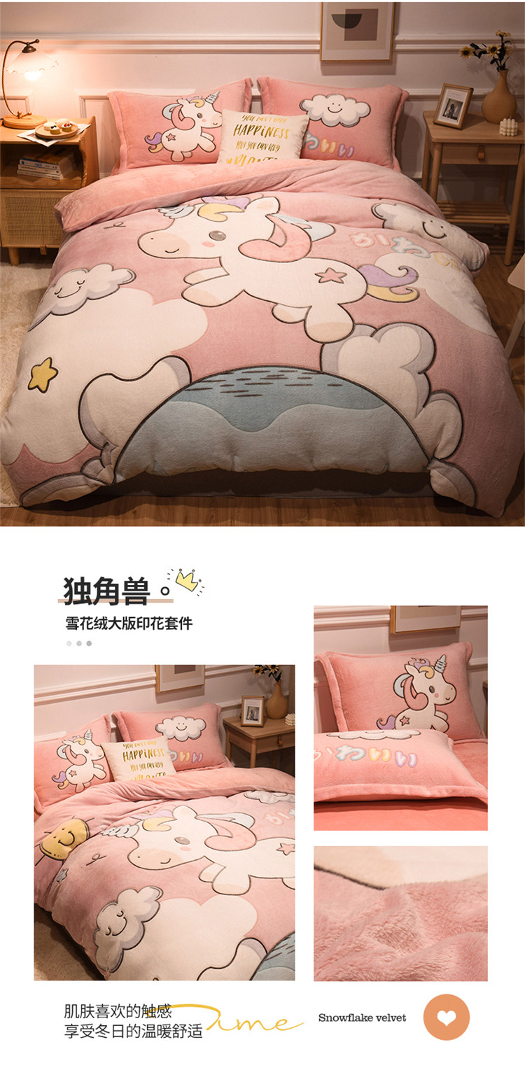 商品名称:懒猫 2022新品大版雪花绒活性印花四件套 独角兽