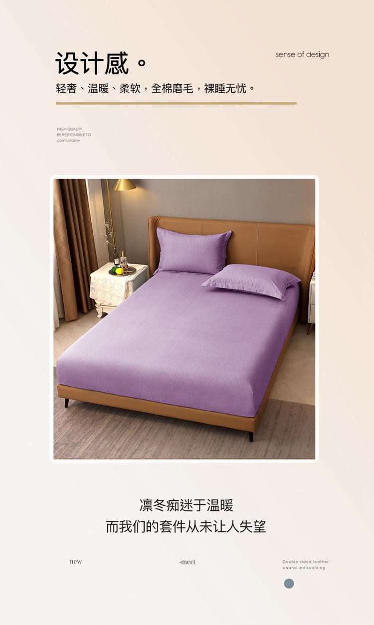晶缦家纺 2022新款加厚全棉纯色生态磨毛多规格系列单床笠 纯依-丁香紫