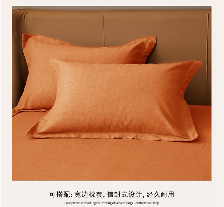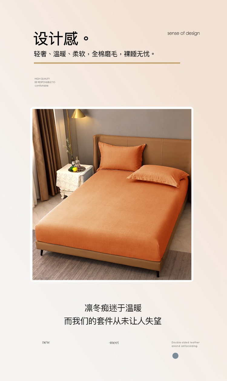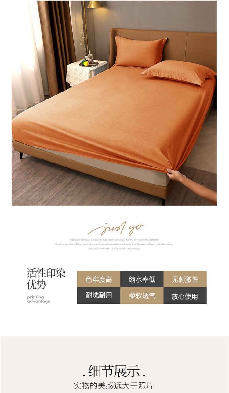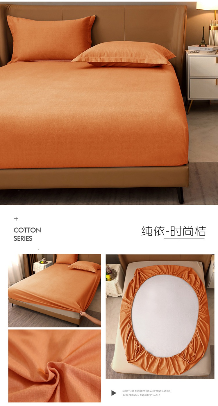 晶缦家纺 2022新款加厚全棉纯色生态磨毛多规格系列单床笠 纯依-时尚桔
