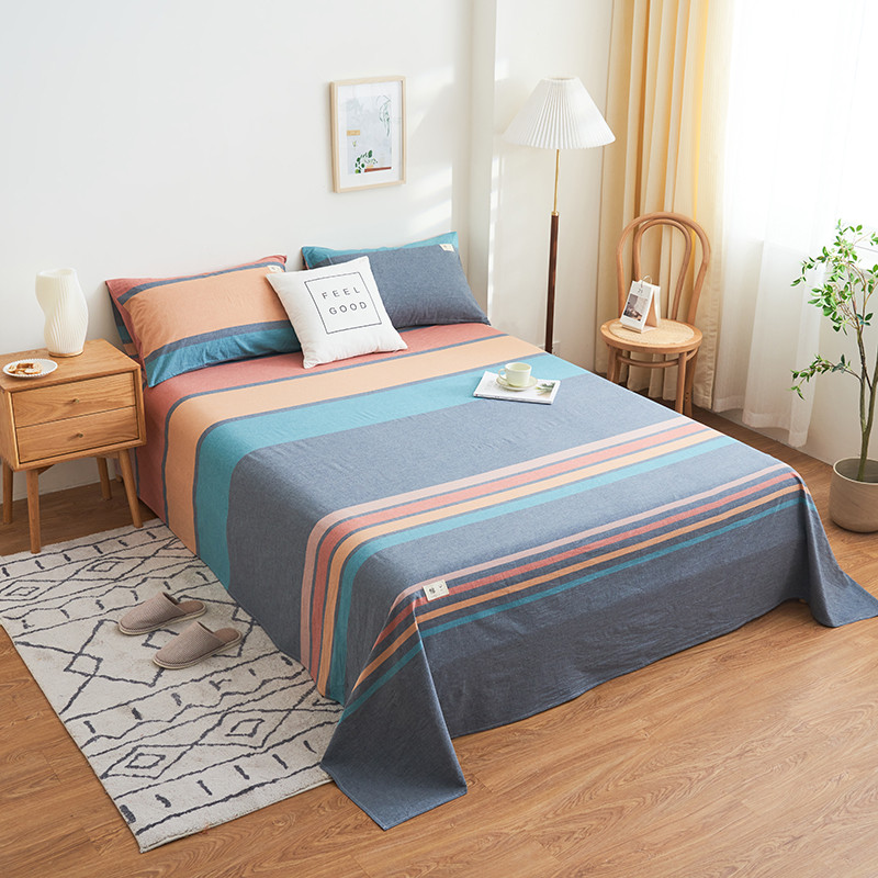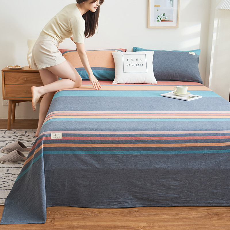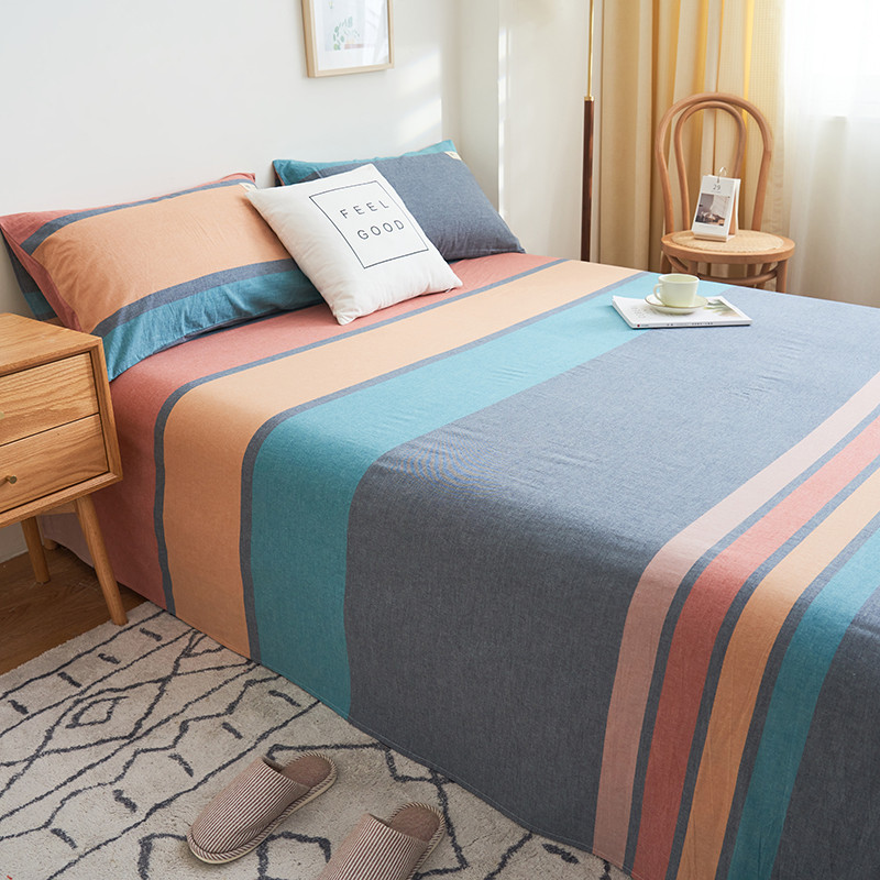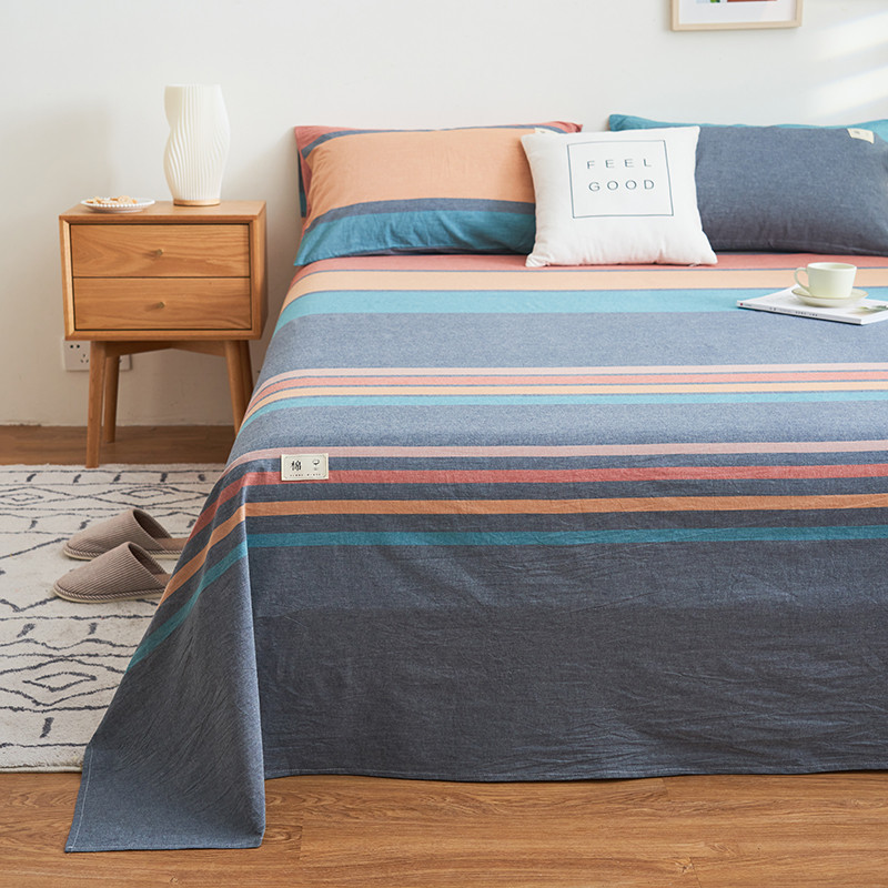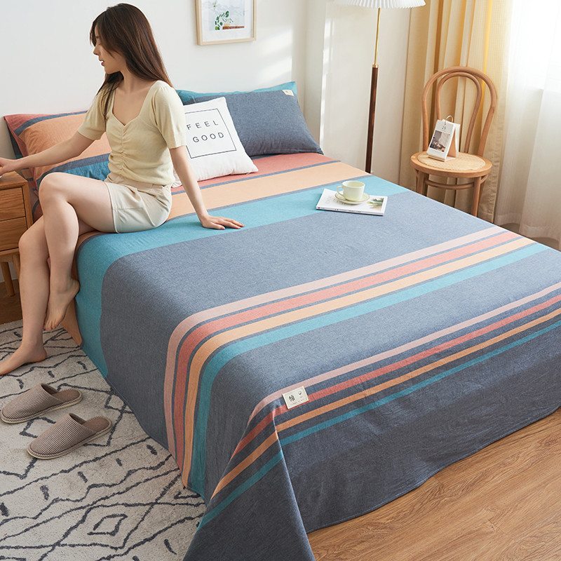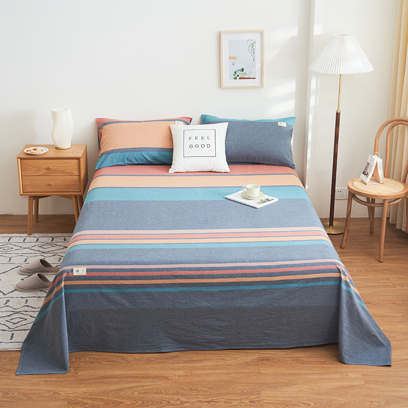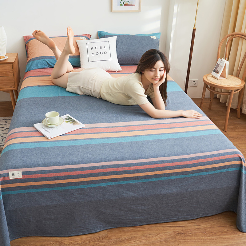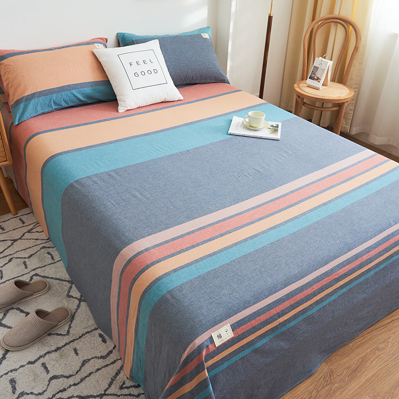 21度C 2023新款A类全棉色织水洗棉单品床单 兰陵彩条