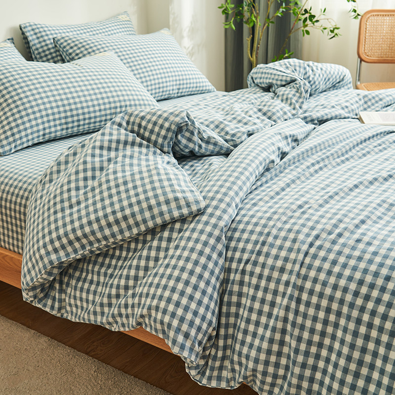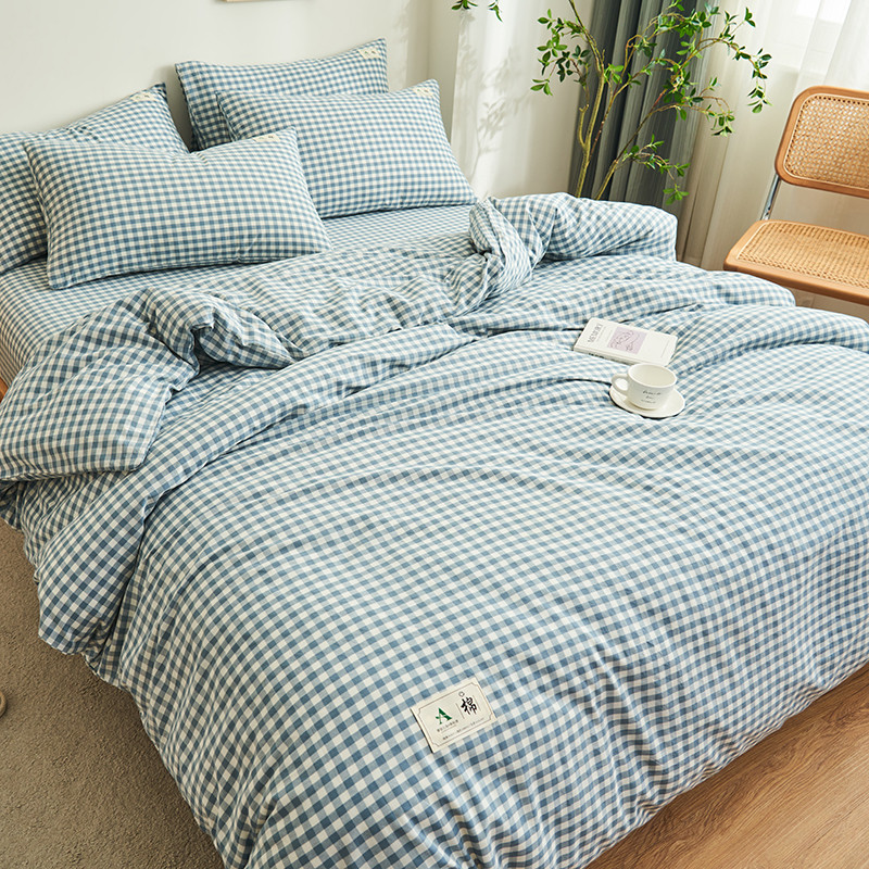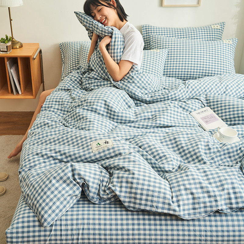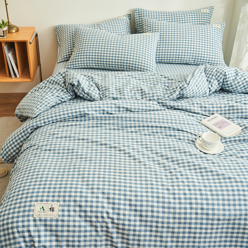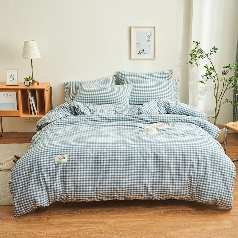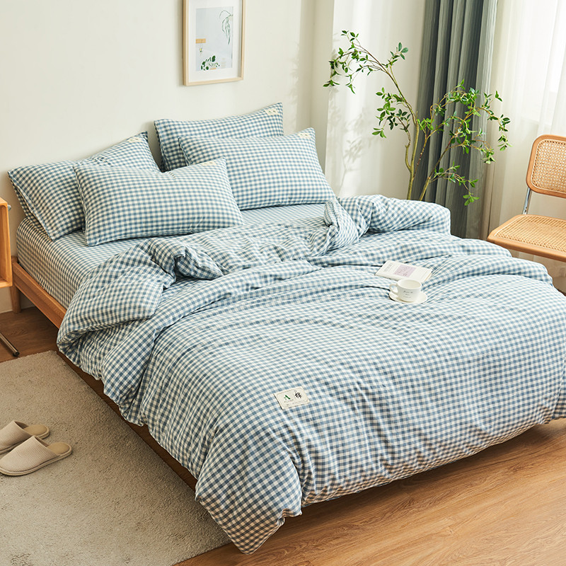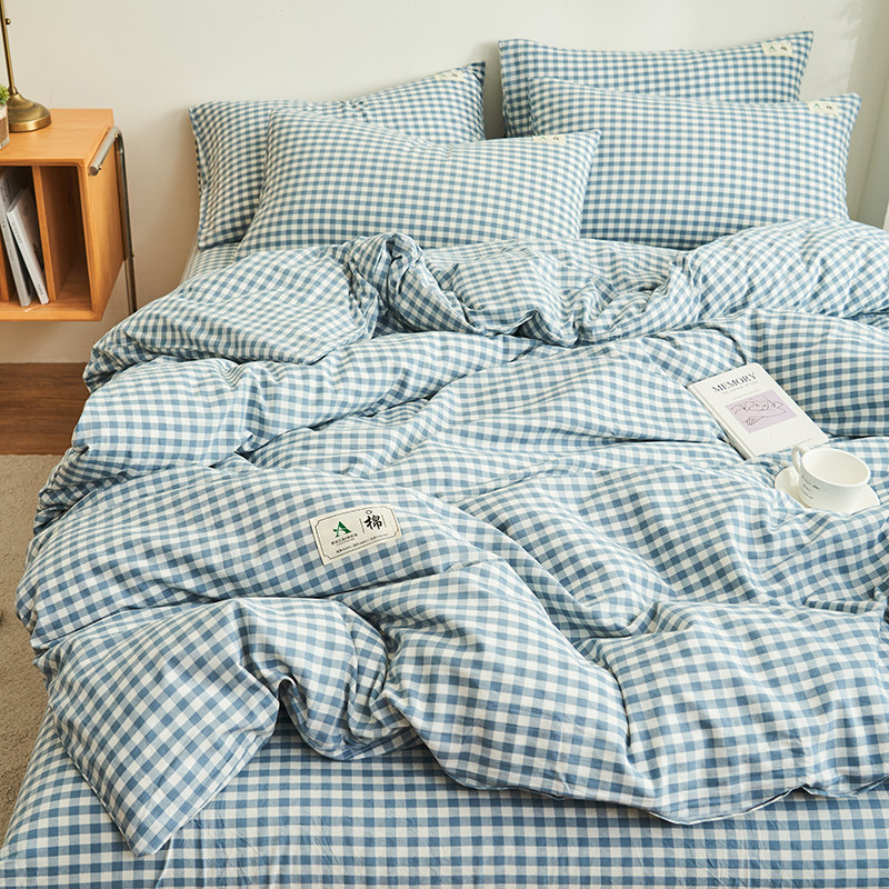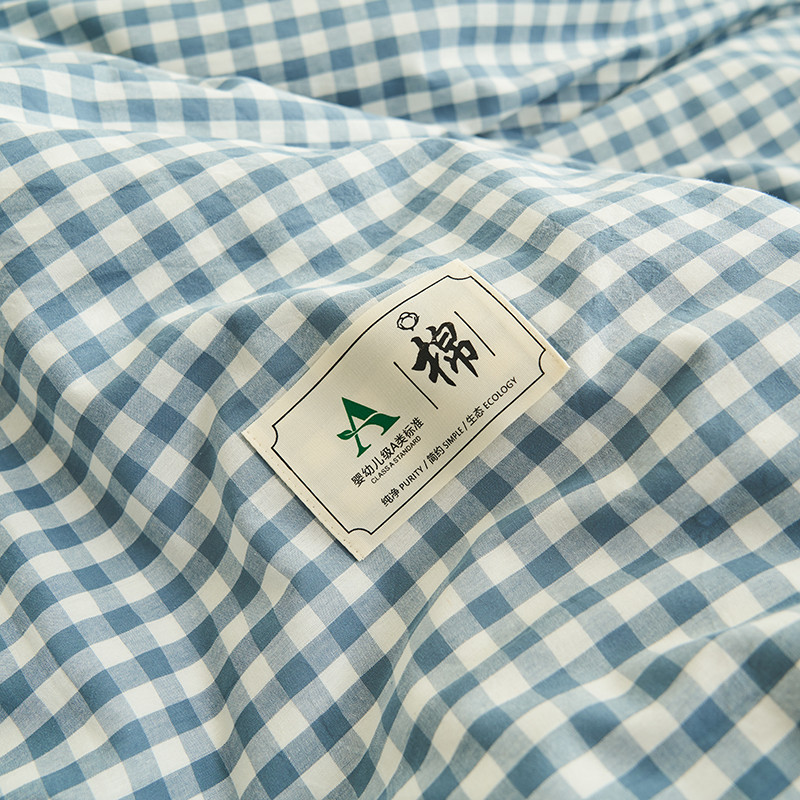 • 91家纺网 家纺一手货源 找家纺 21度C 2023新款A类全棉色织水洗棉单品被套 浅蓝小格
