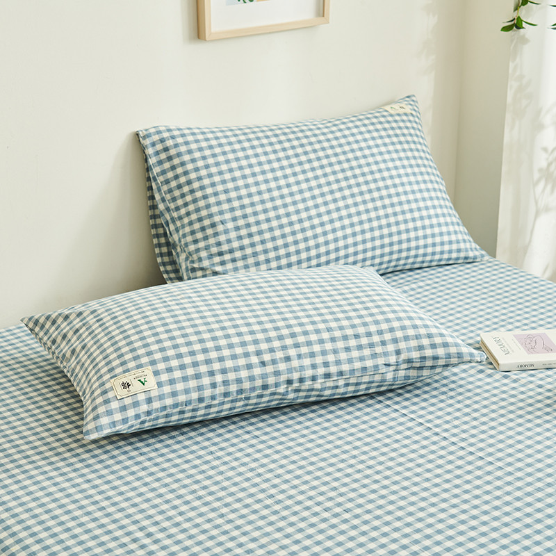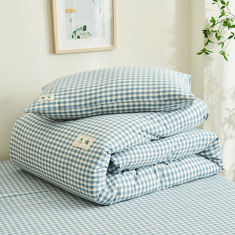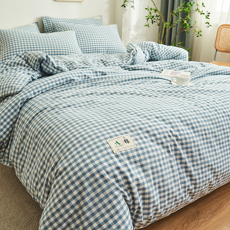 21度C 2023新款A类全棉色织水洗棉单品被套 浅蓝小格